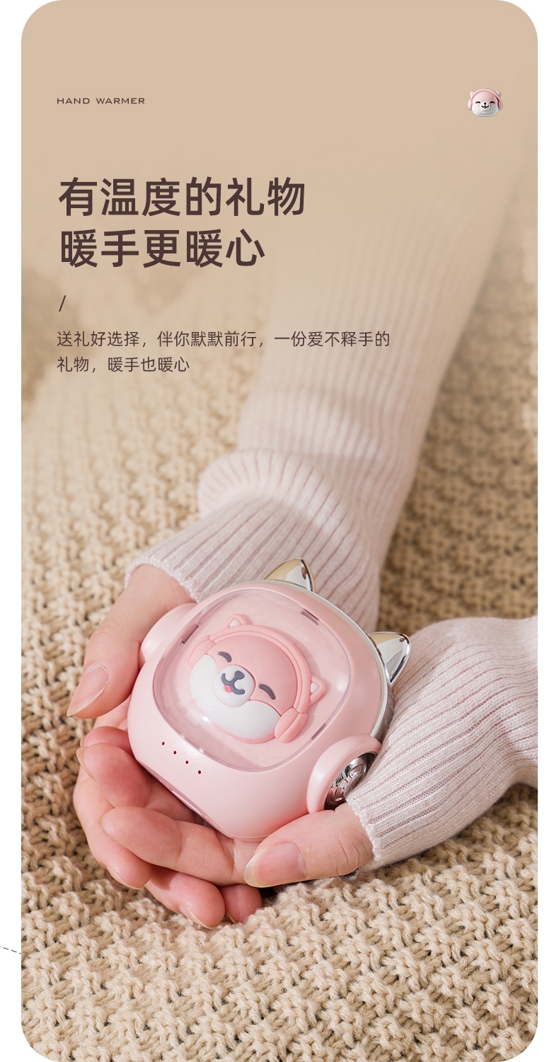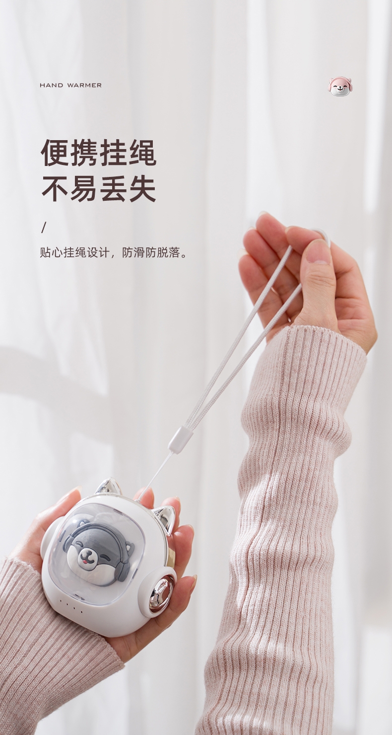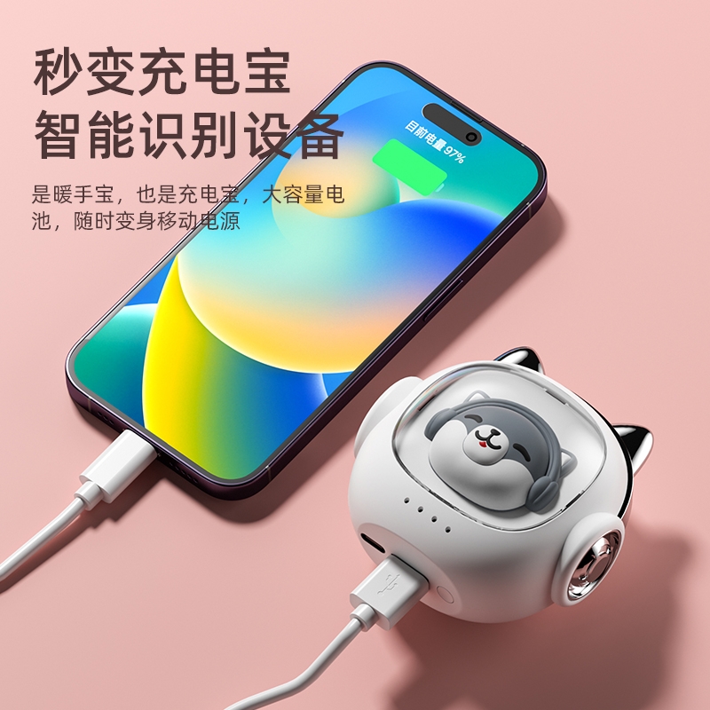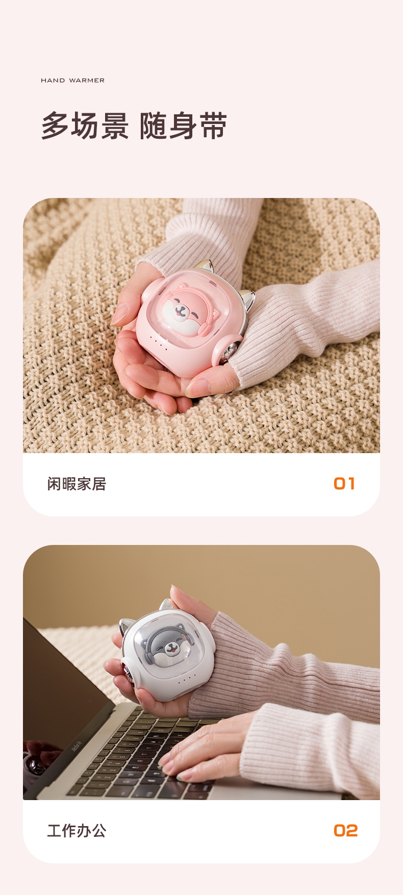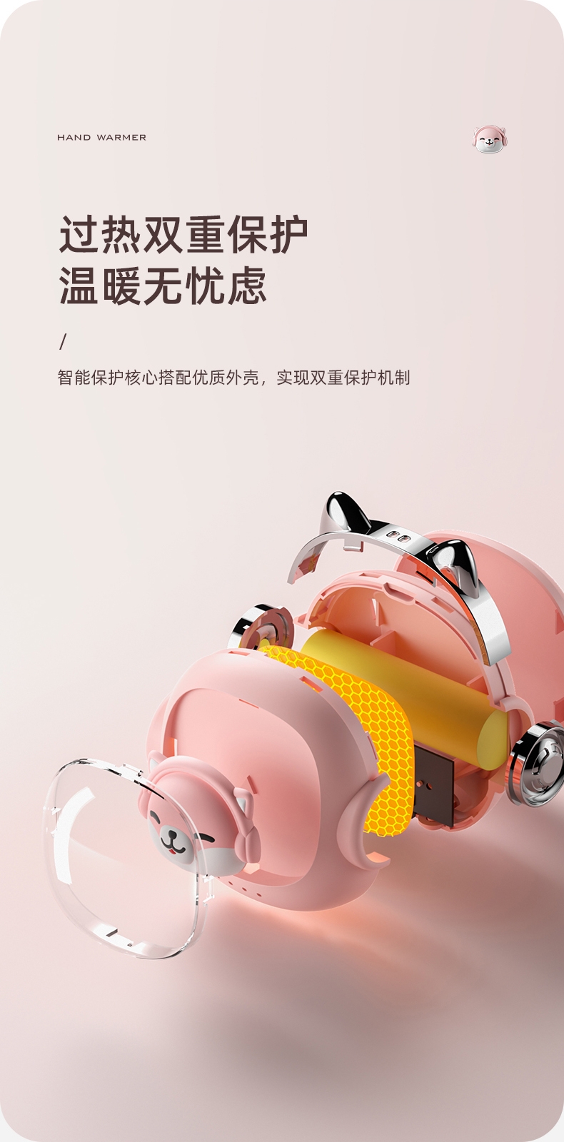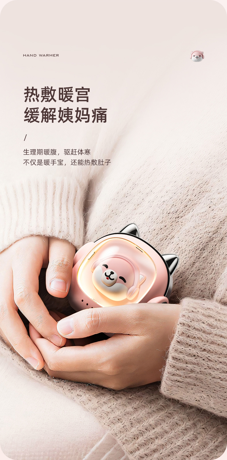 一键操作,三档温度调节;安全防爆,双重过热保护;即是暖手宝,又是充电宝;小夜灯设计,氛围感拉满;1800mAh大容量电池,超长续航