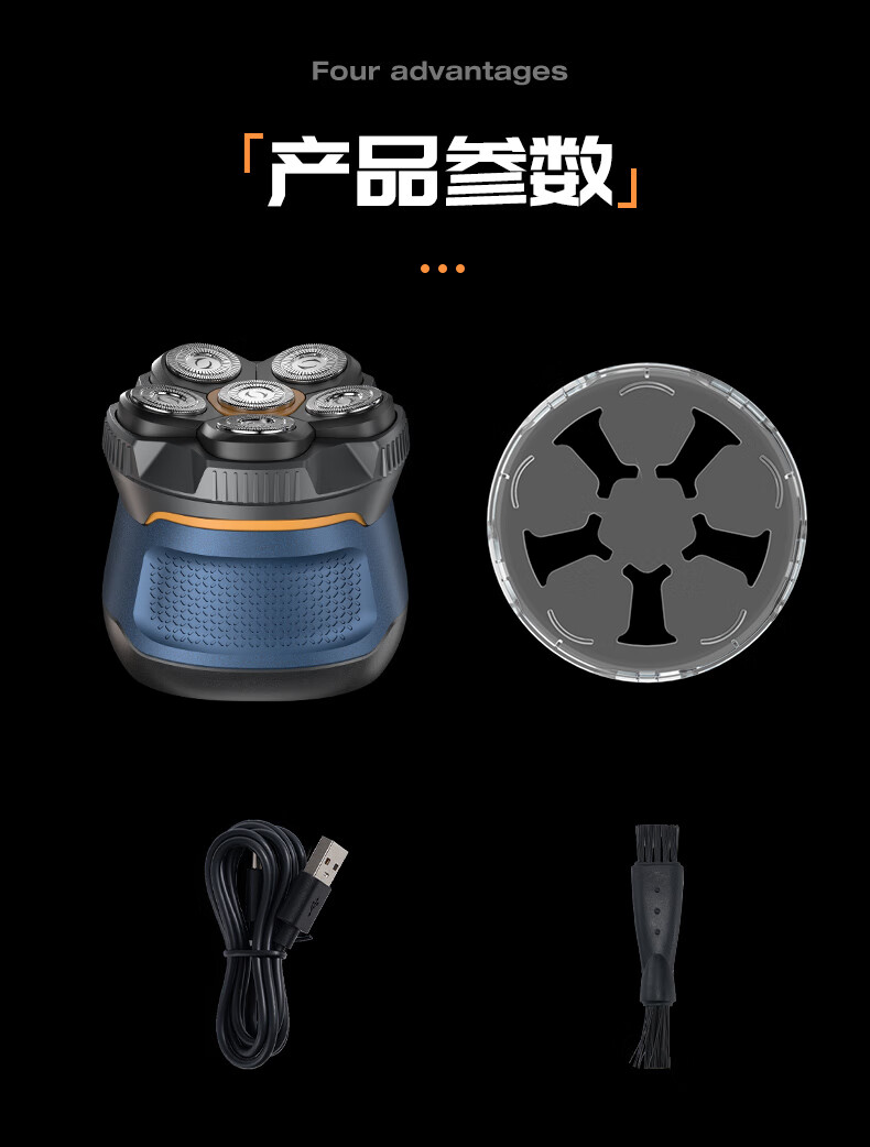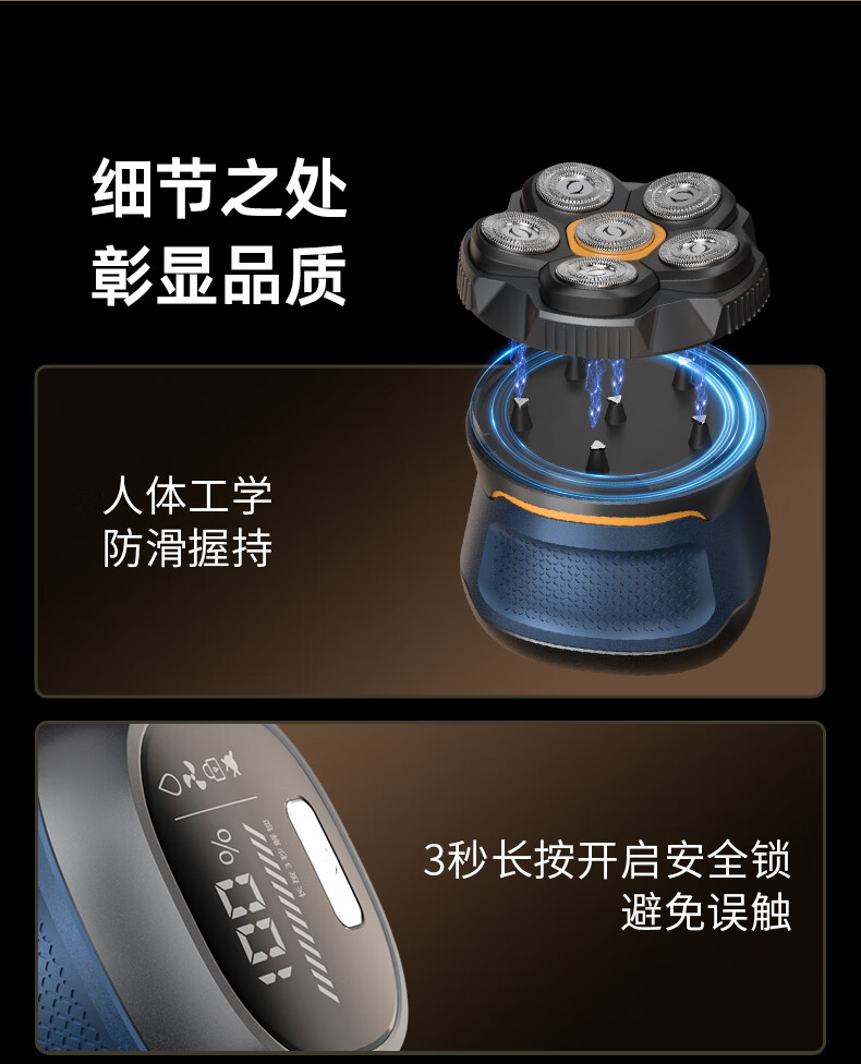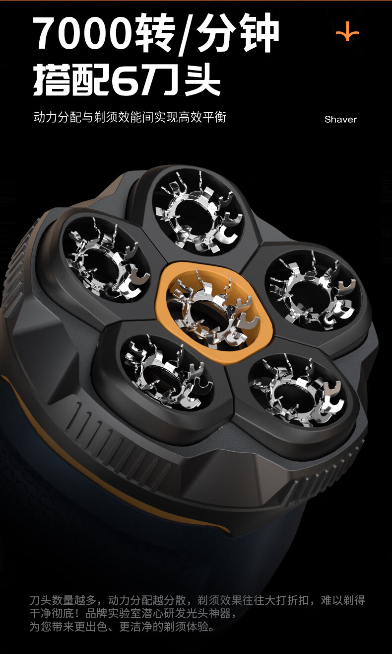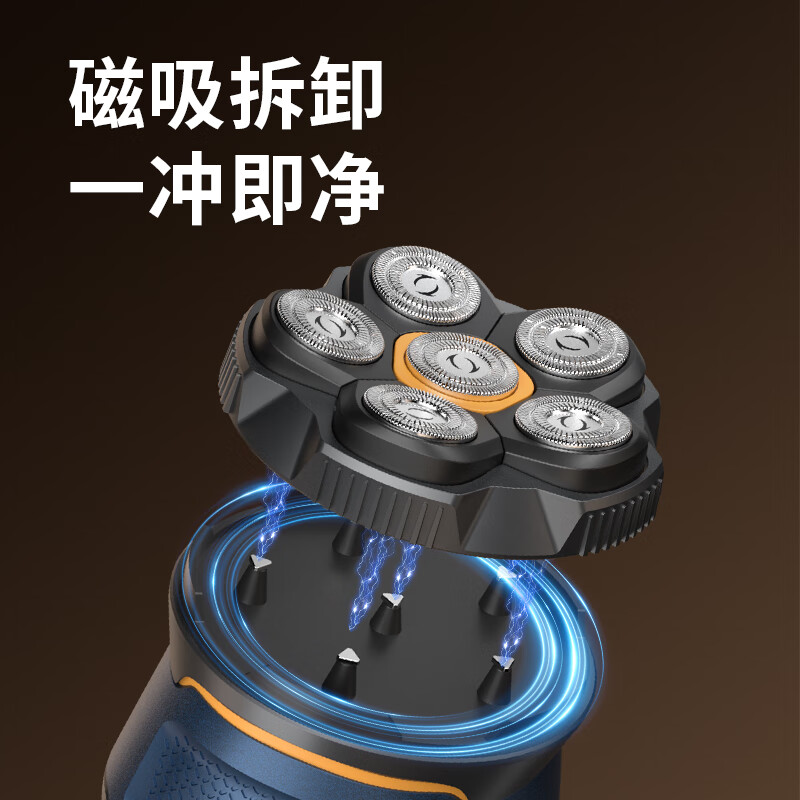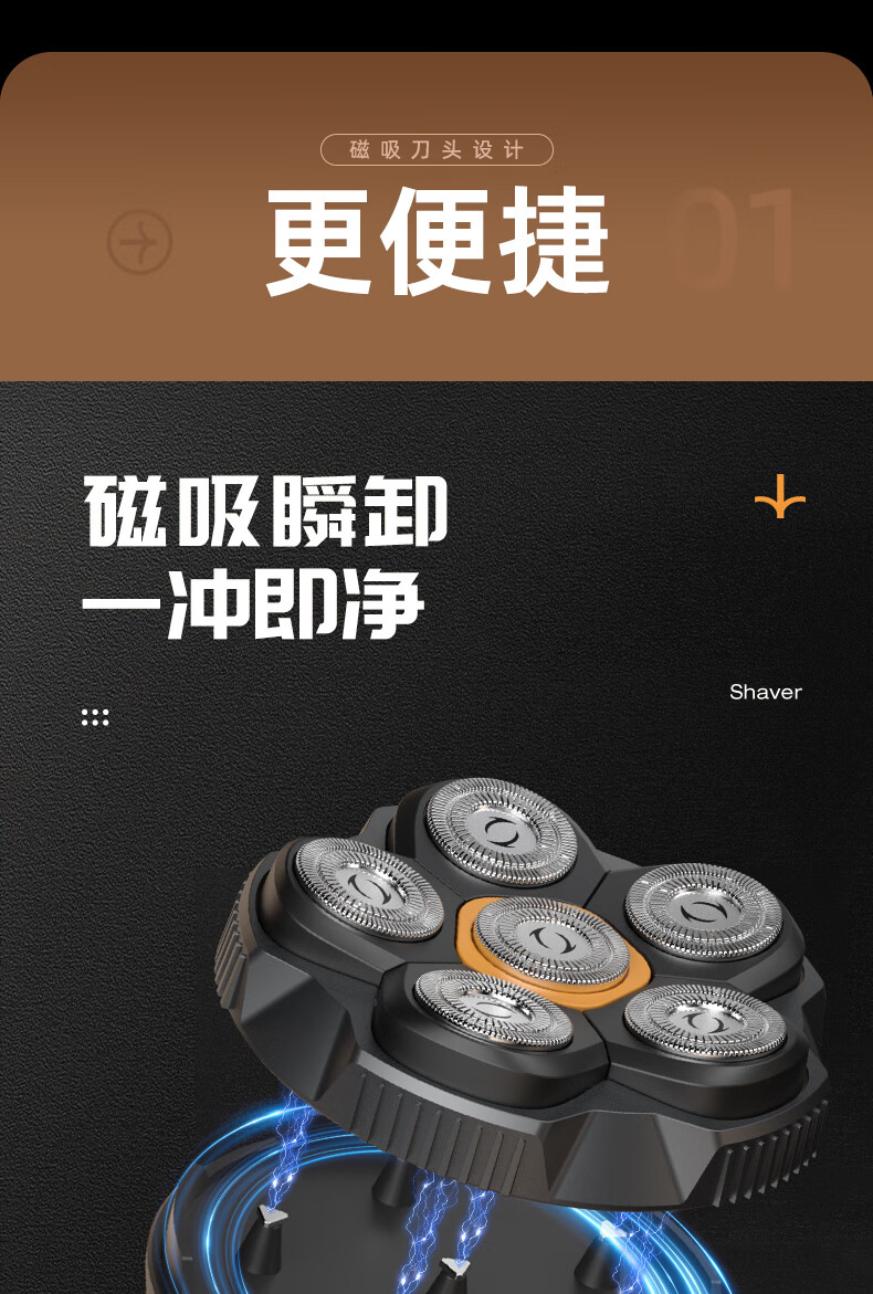 磁吸刀头,易拆卸;全身水洗,清洁方便;紧贴皮肤,不留死角;大功率,高转速