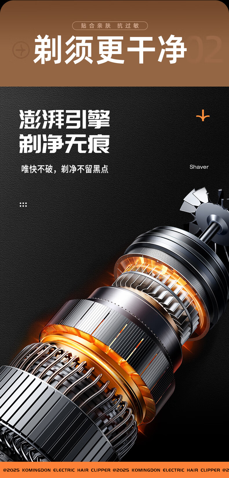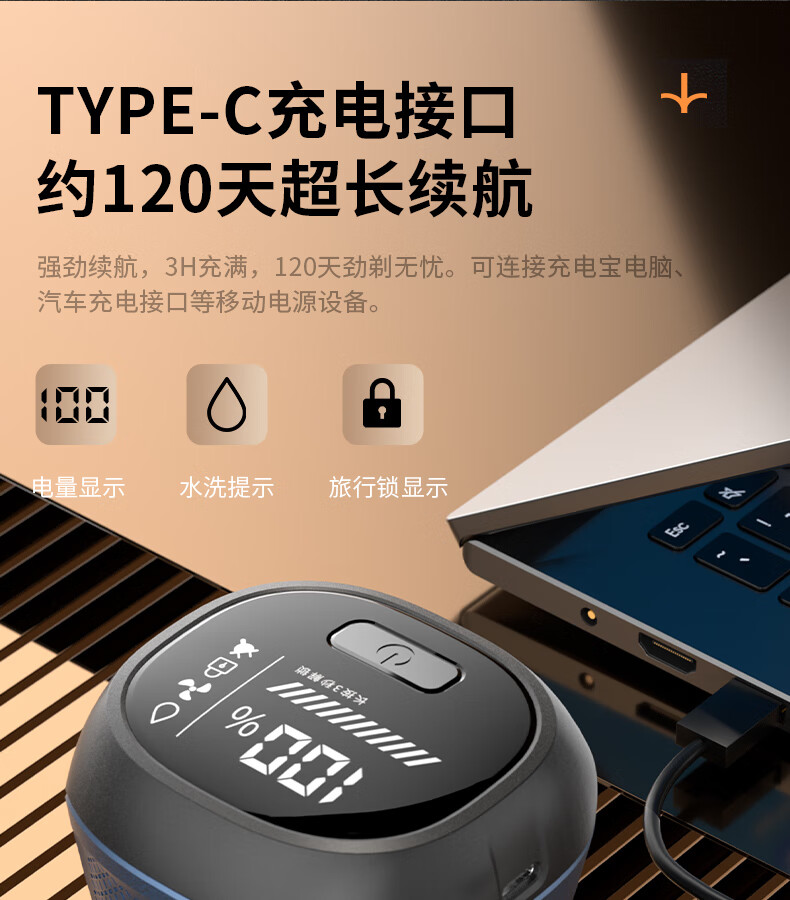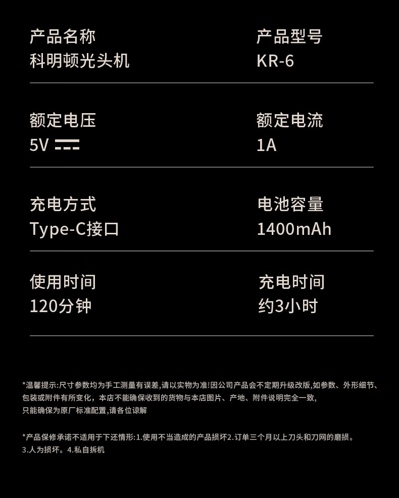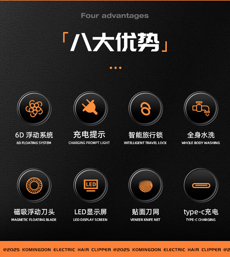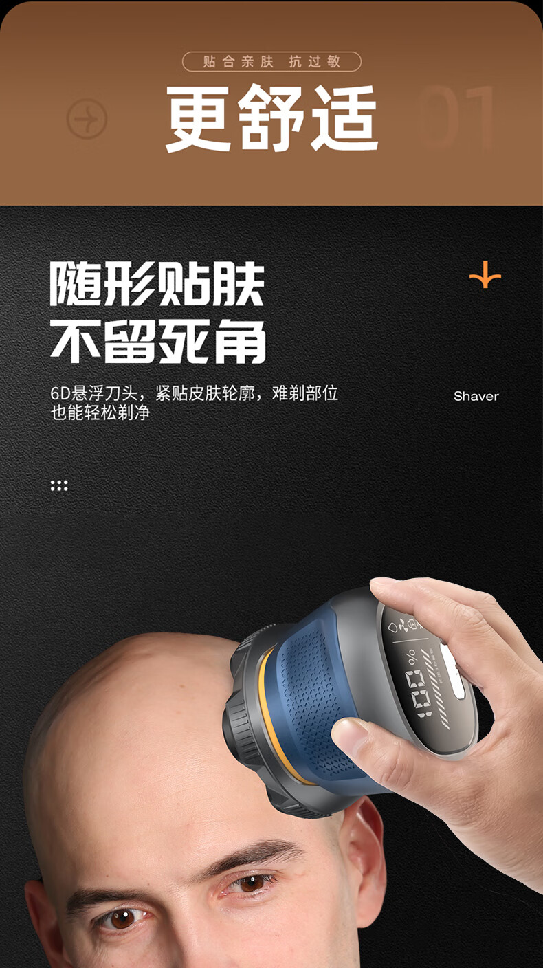 磁吸刀头,易拆卸;全身水洗,清洁方便;紧贴皮肤,不留死角;大功率,高转速