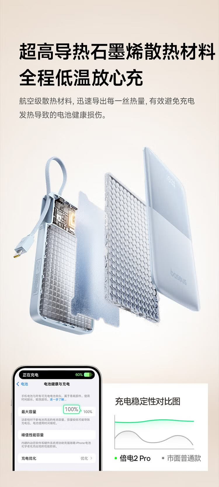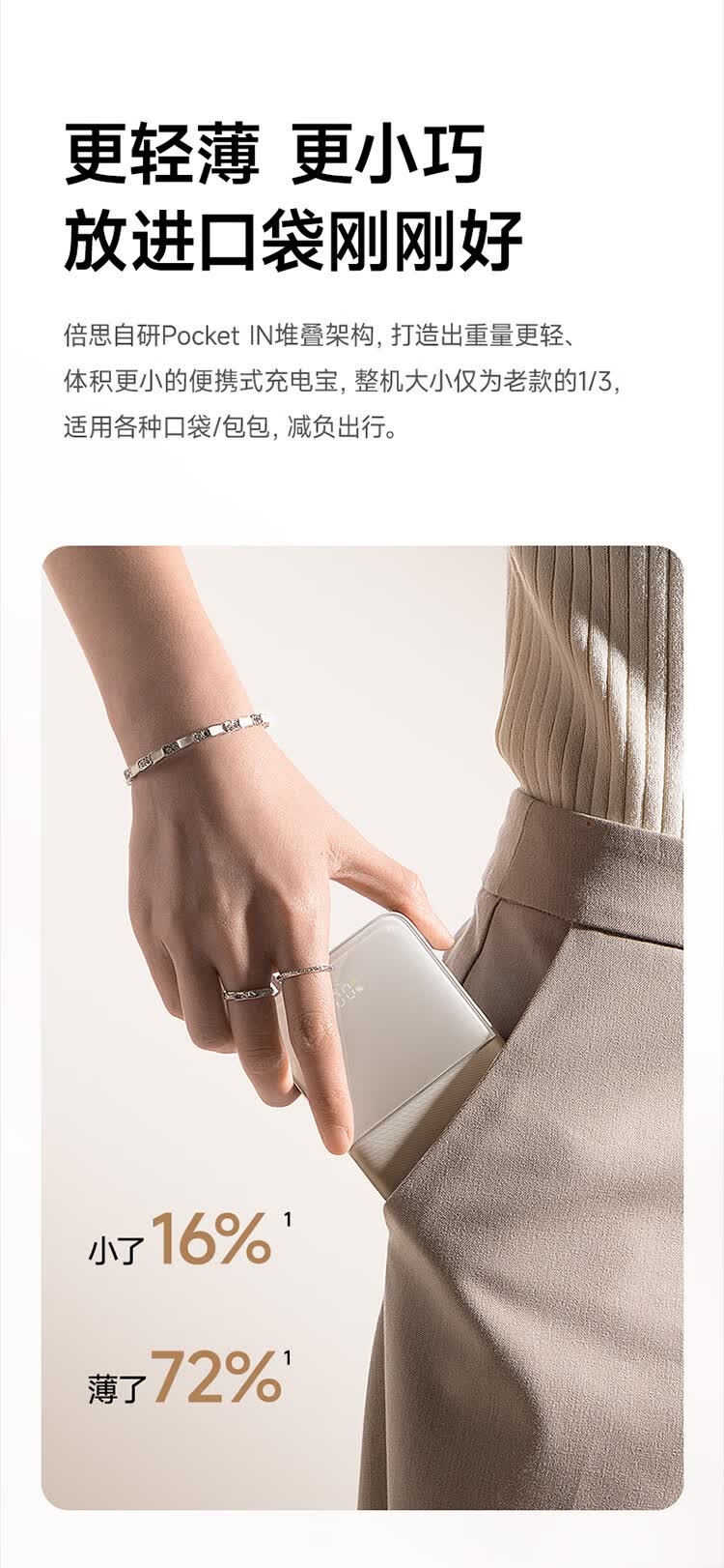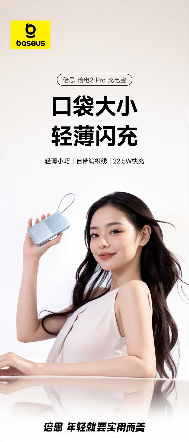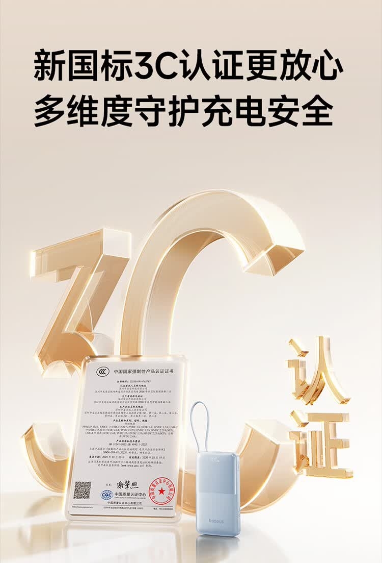 自带升级款编织快充线,强韧耐用;22.5W快充,主流品牌设备都能充;自带线支持双向充电,输入输出双快充