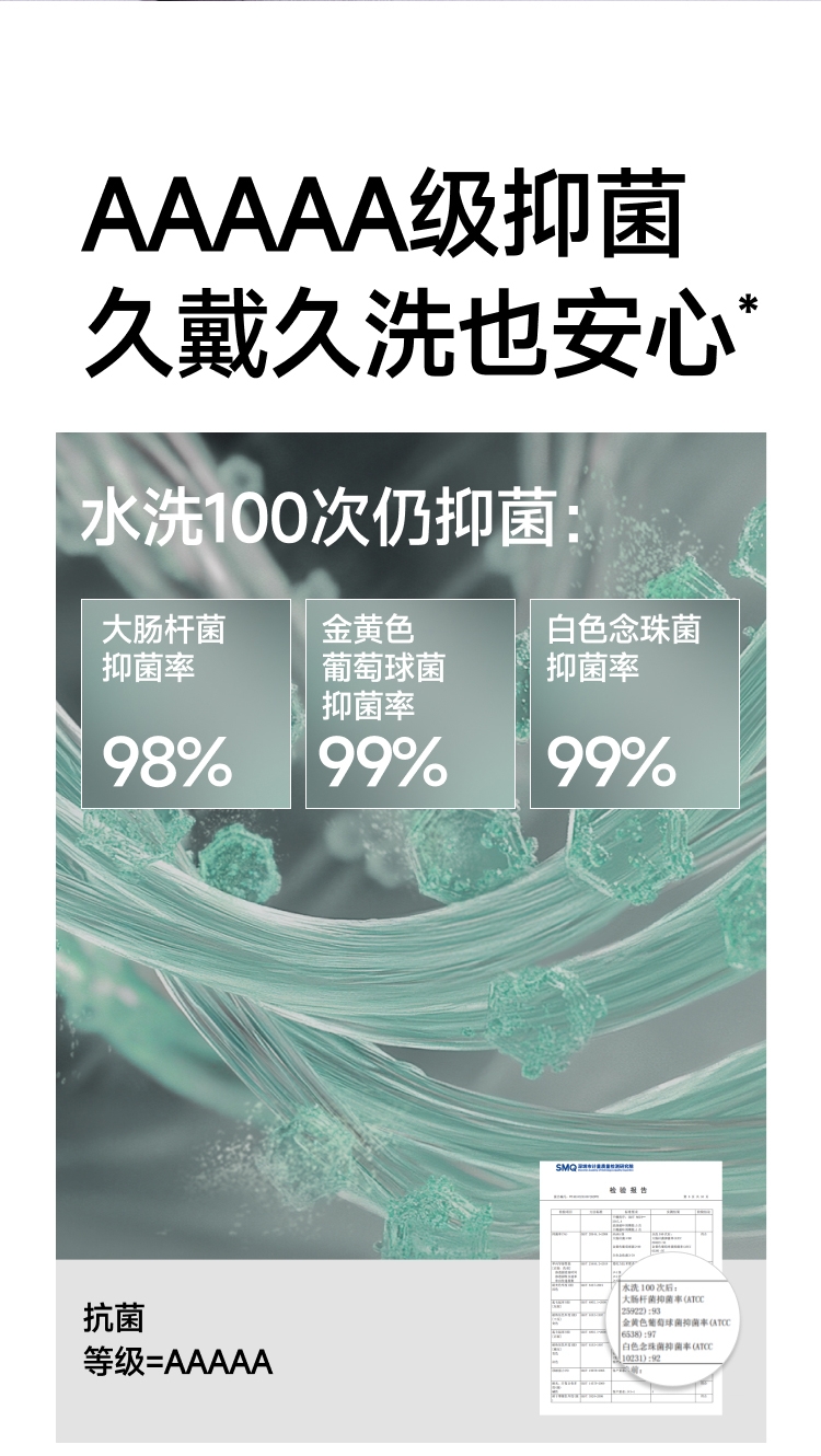 经久耐用超性能耐磨;抗静电处理丝滑穿脱手指无痒感;物理抑菌洗后仍抑菌久戴无异味