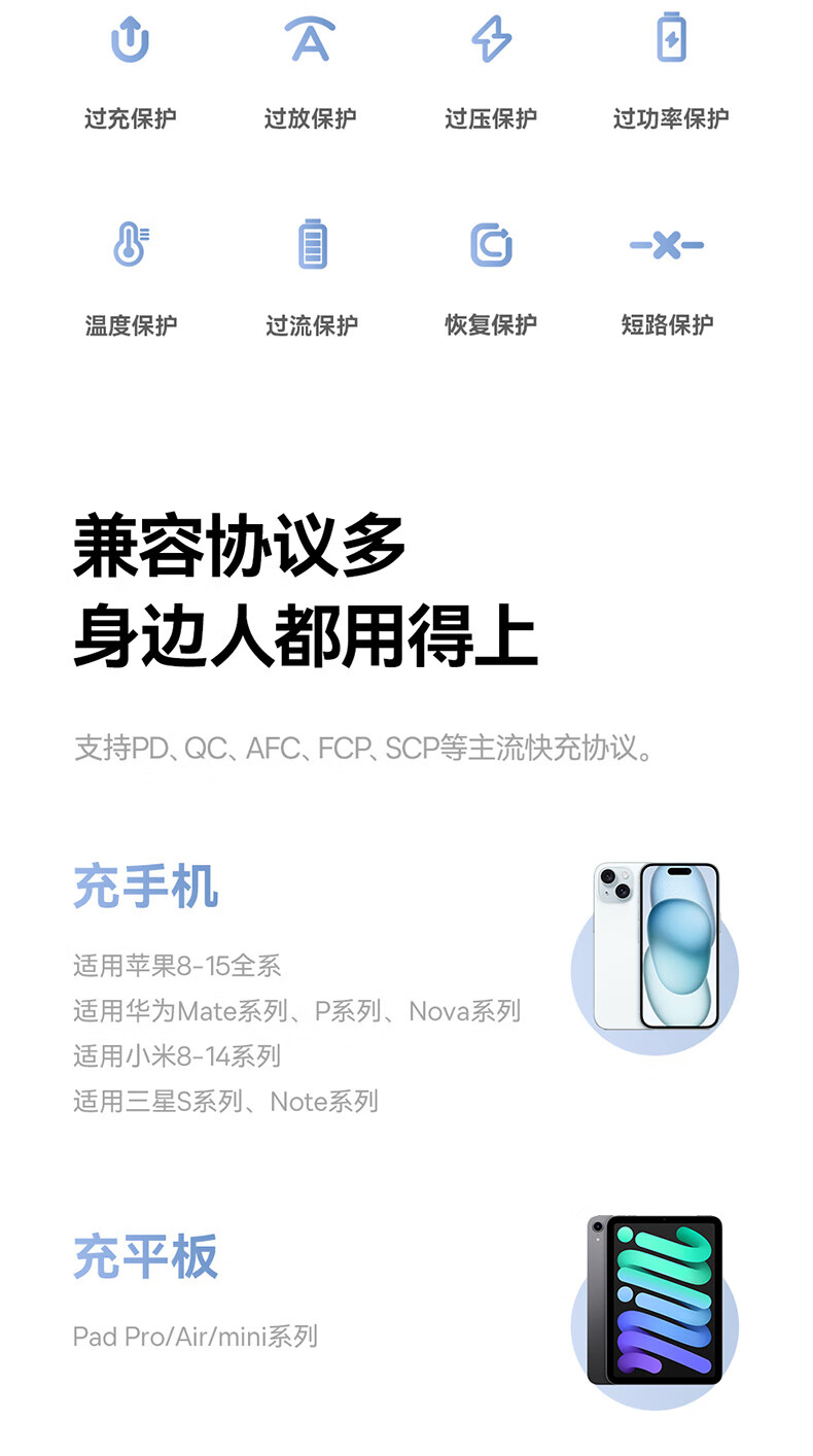 超大容量续航更持久;小巧且强大,4台同充;30分钟速充 54% 苹果 15 Pro Max