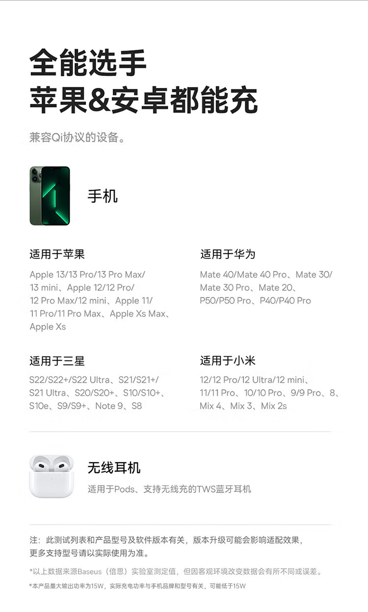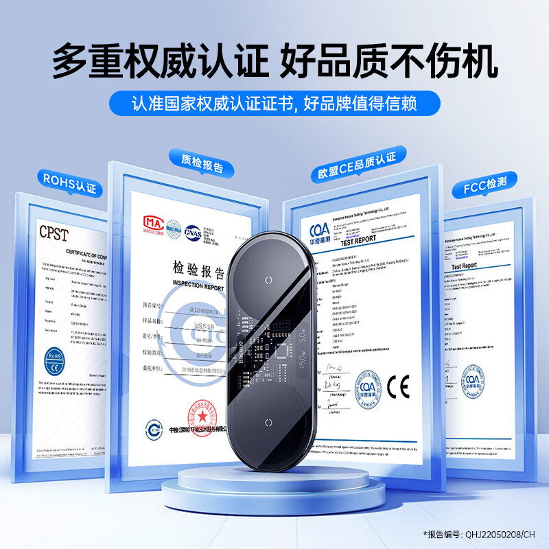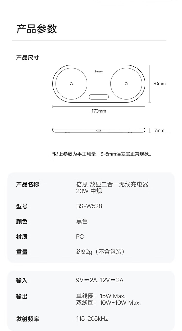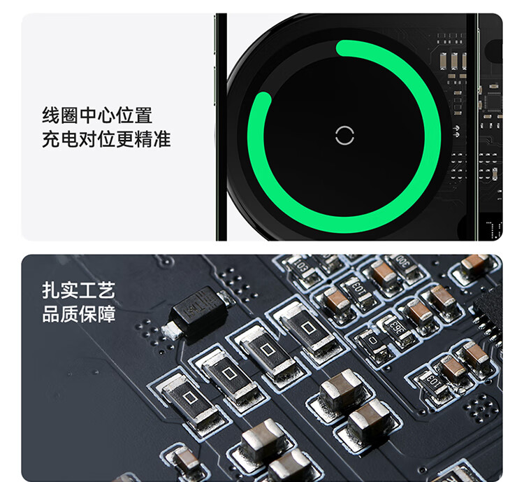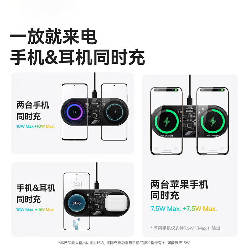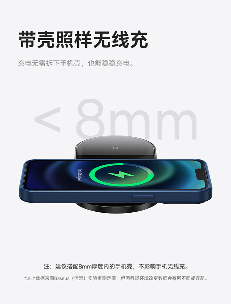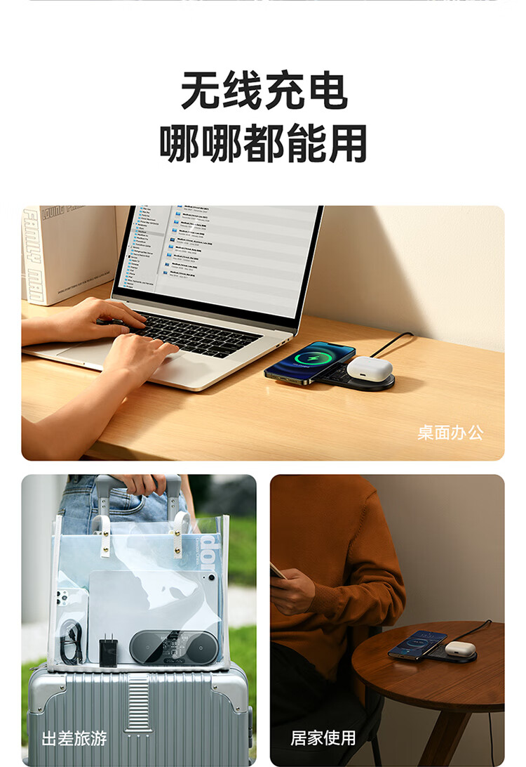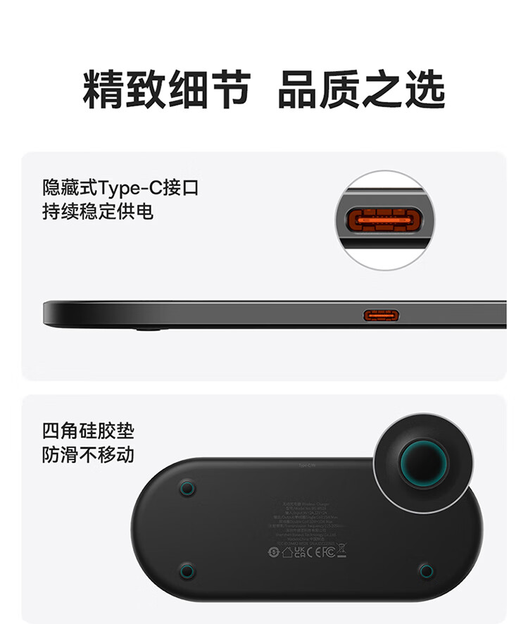 双设备同时充,自带双数显;独立双线圈,充电互不干扰;轻薄易携带,带壳照样充
