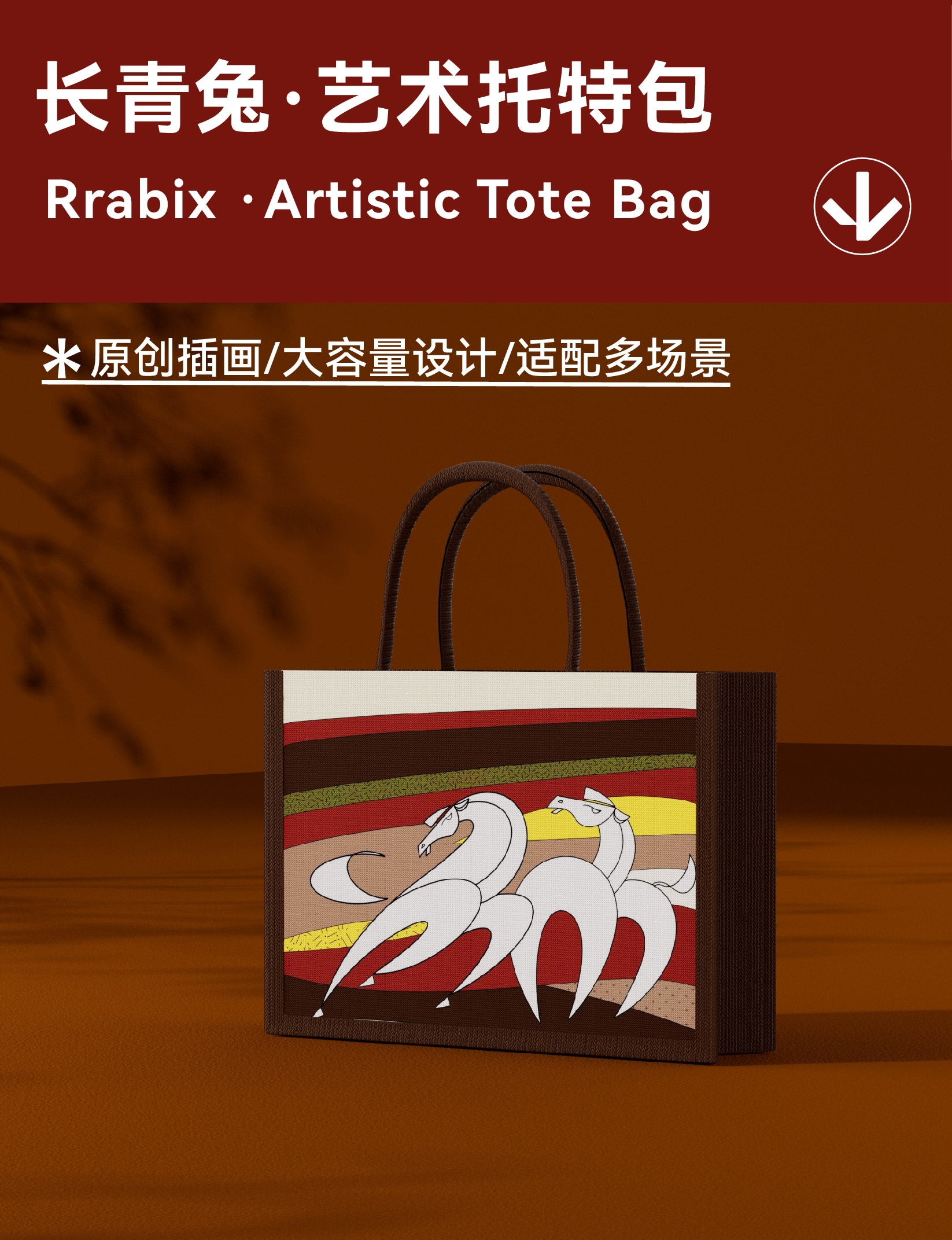 艺术托特包:尺寸:400x300x150mm 材质:帆布