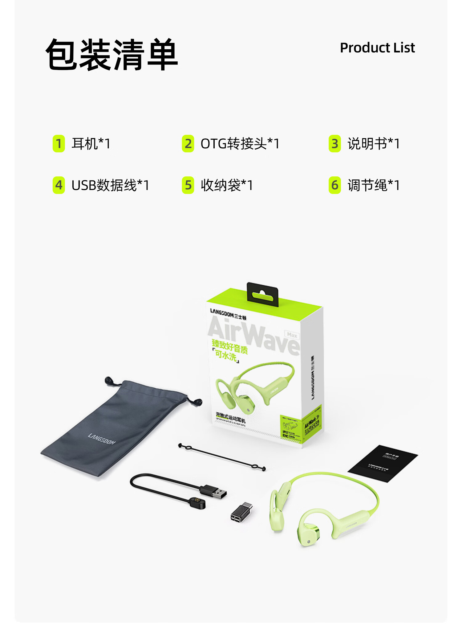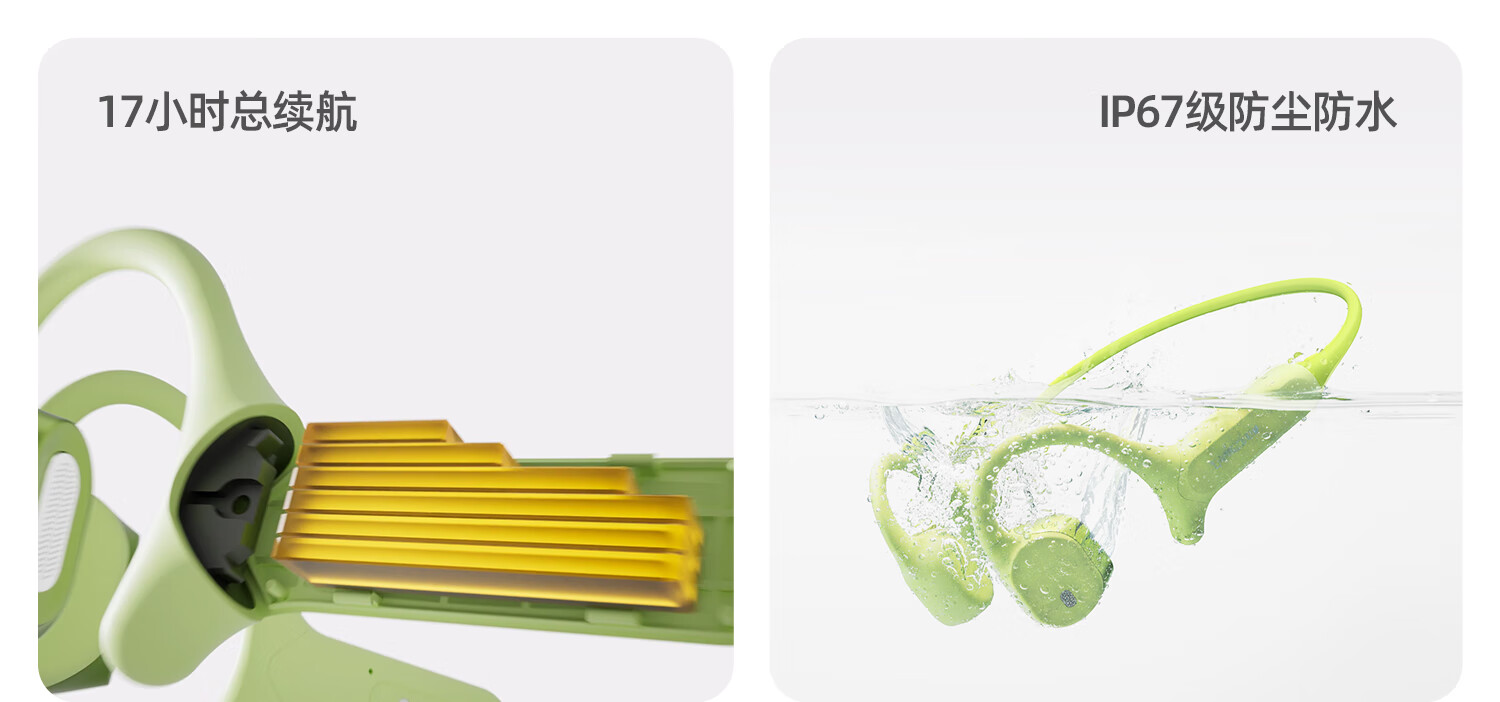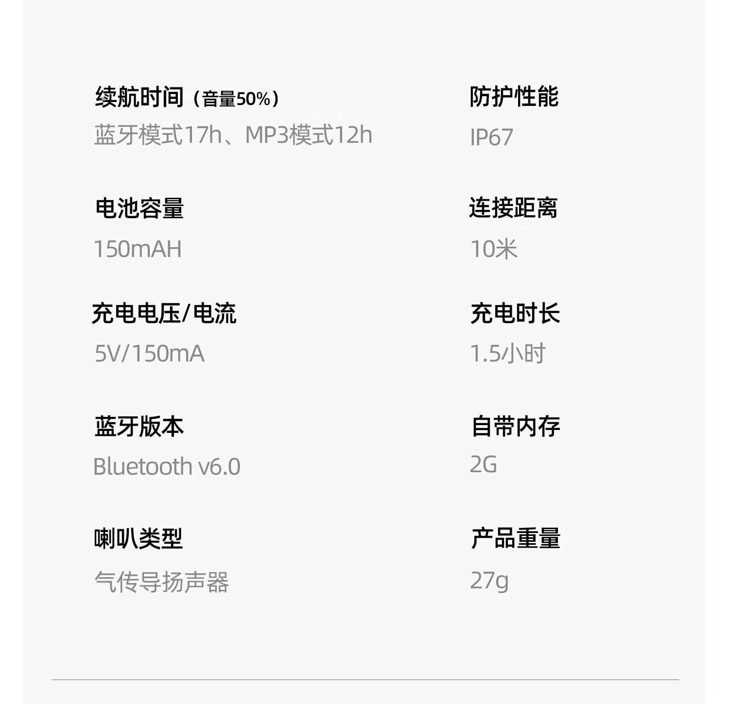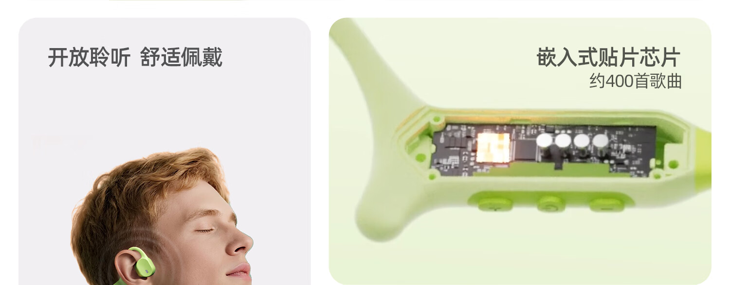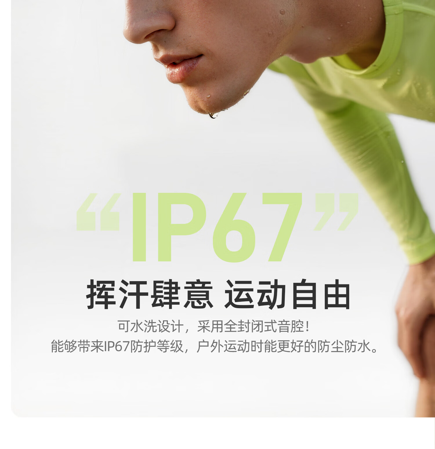 2G独立存储+OTG下歌,无需手机畅听400首;不入耳开放聆听,IP67 防尘防水更安全;澎湃音效+ENC降噪,长续航+APP智控