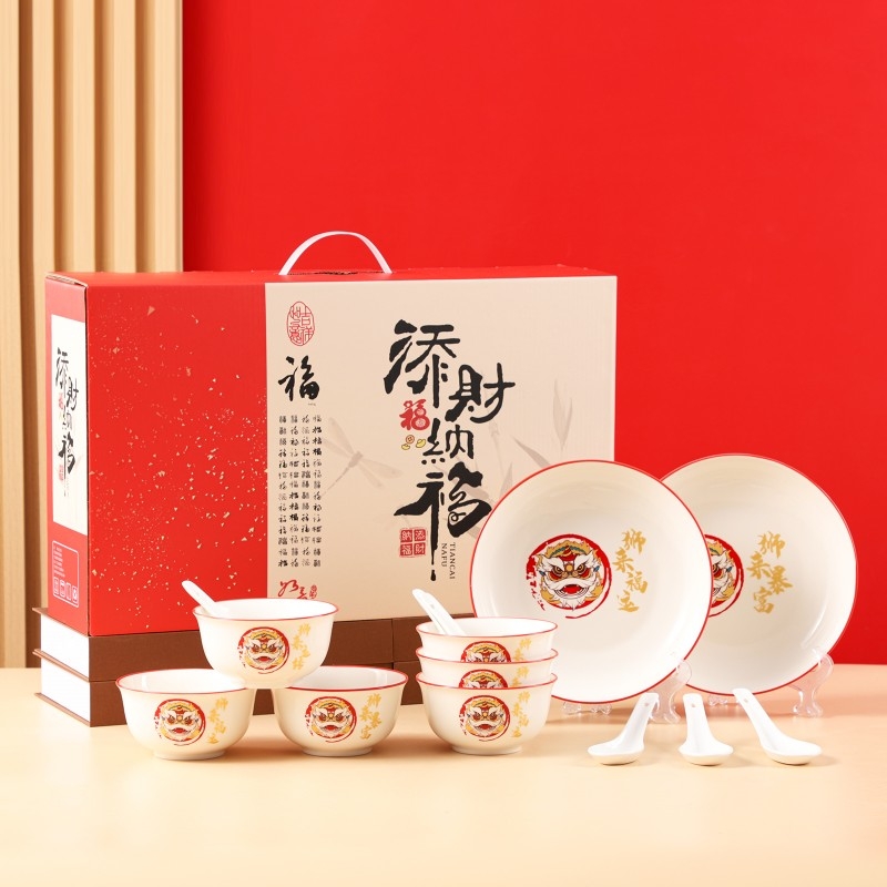 狮来运转,开启好运循环;狮来暴富,财运滚滚而来;狮来福运,福气满满萦绕;狮来稳赢,生活事事顺遂。;一套集齐,让每餐都伴着财气与福气,吃饭都像在迎好运;醒狮餐具套装,把多财多福端上桌!