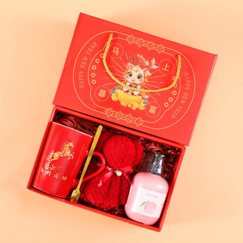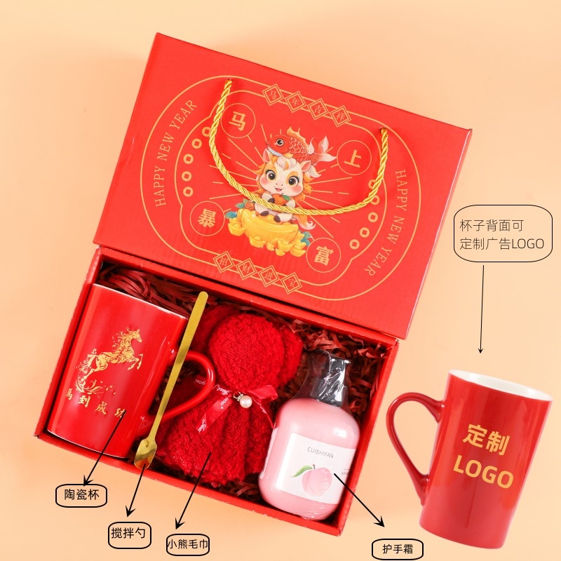 红瓷盛意,马到成功!这款红红火火的马年主题杯具礼盒;红杯暖手,护手霜润肤 一杯一护,暖透整个冬天;红陶瓷杯捧在手心暖茶,护手霜抹开润到指尖