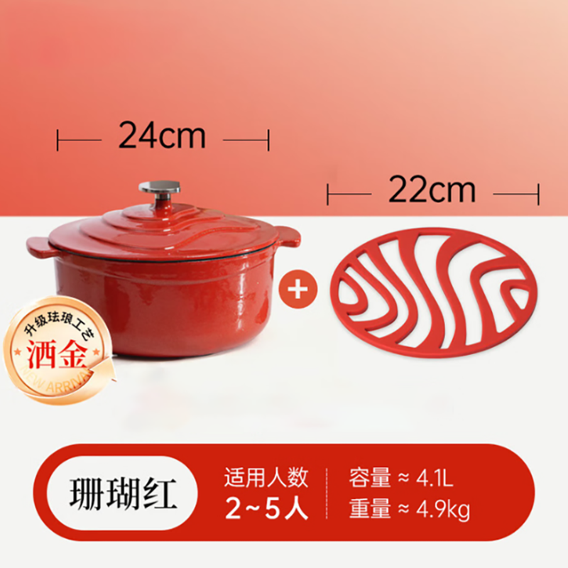配置:24cm炖锅+硅胶锅垫+清洁膏