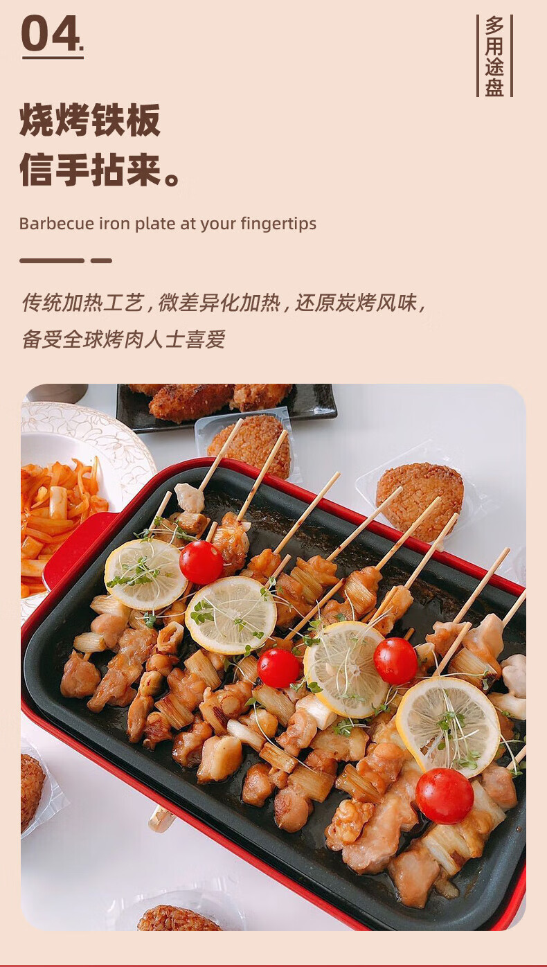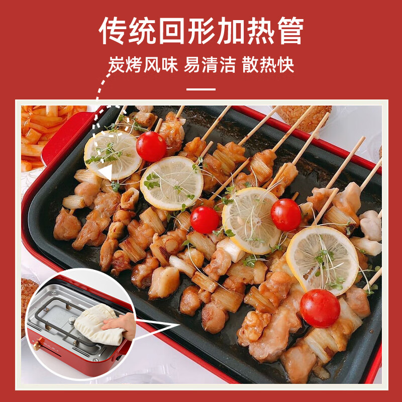 机械温控手柄,无级温控;内置恒温器,比明火更易掌控火候;保留经典加热管设计,还原炭烤质感