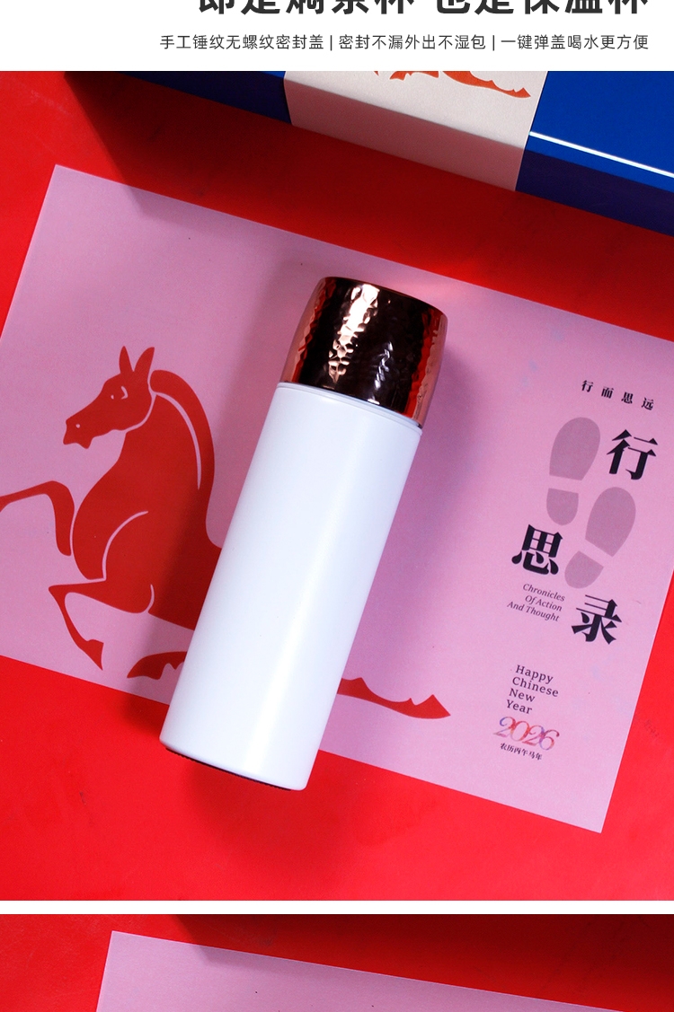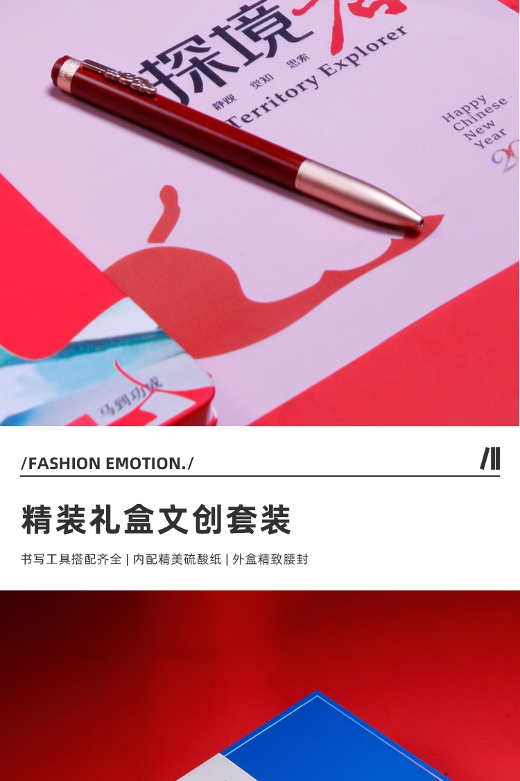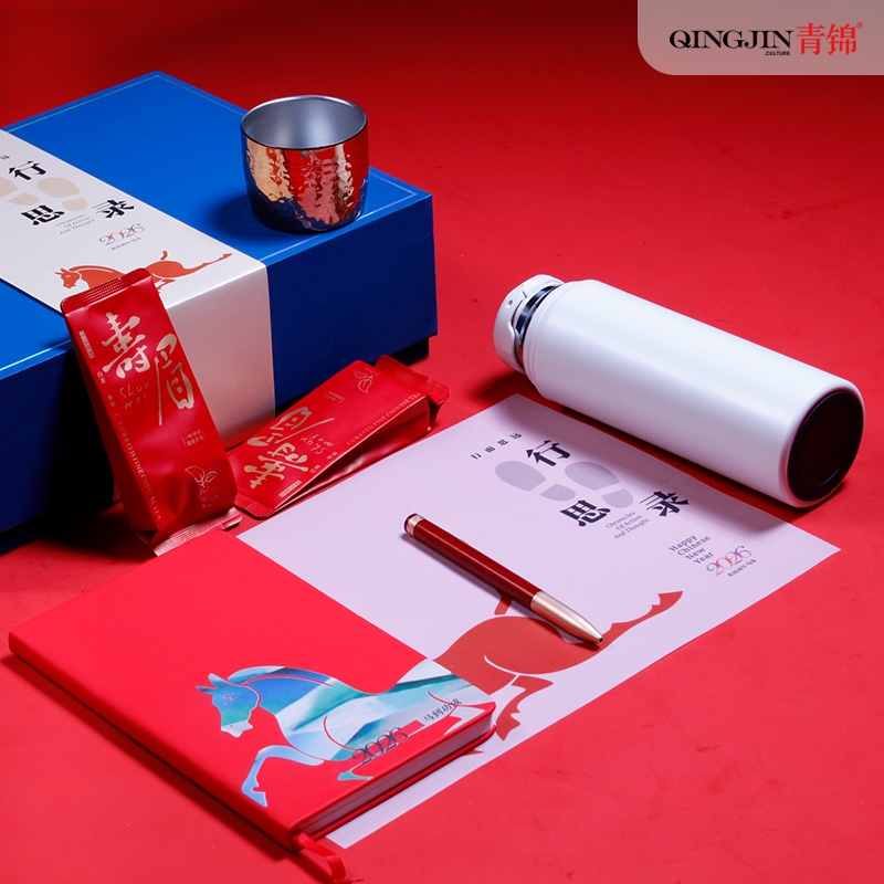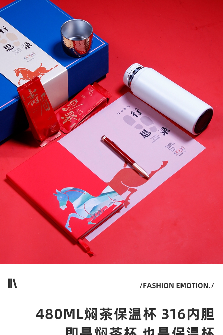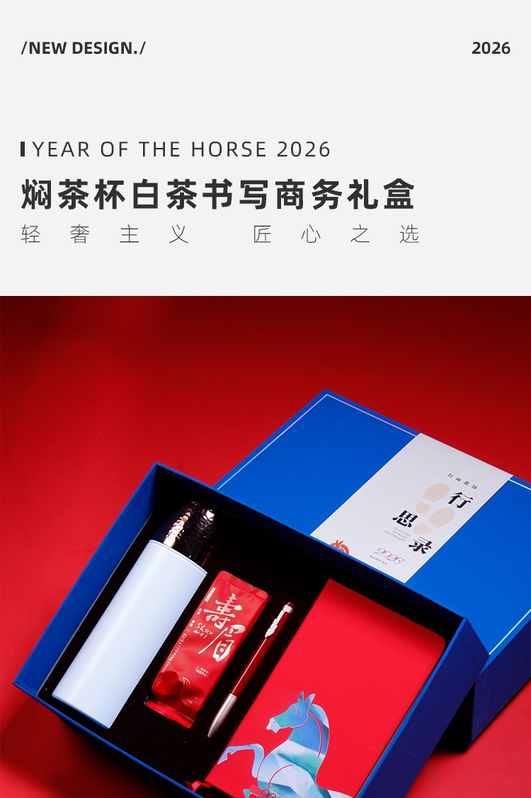 蓝色触感超大礼盒精致高级免费定制logo 现货快发;316材质闷茶壶480ml超大容量杯盖可做水杯方便;配置齐全 红花梨木宝珠笔与绝影记事本书写马年祝福