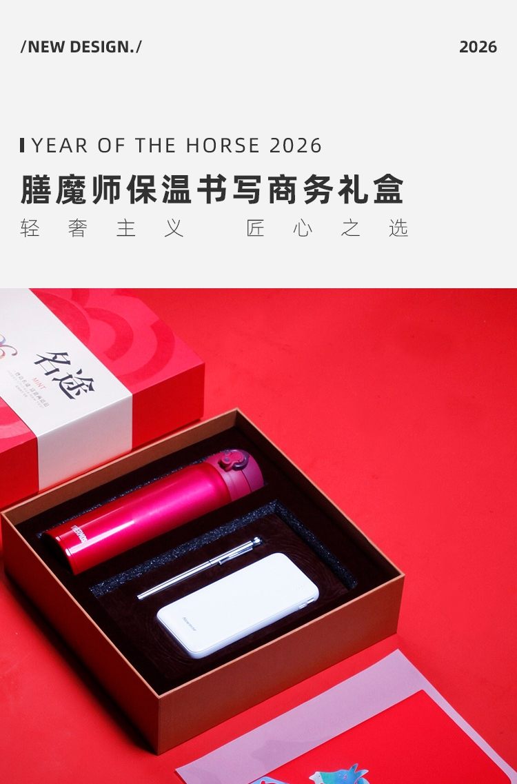 配置清单:配置 膳魔师保温杯480ML*1 青马笔记本*1 颜色黑色/红色/彩印色 签字笔*1 纽曼移动电源*1 白色 手提袋套*1 精装礼盒*1 材质 保温杯:304钢 签字笔:abs 笔记本:皮革千越象牙白纸100克80张 尺寸 笔记本:130*212mm 保温杯:220*60*60mm 礼盒:272*272*83mm