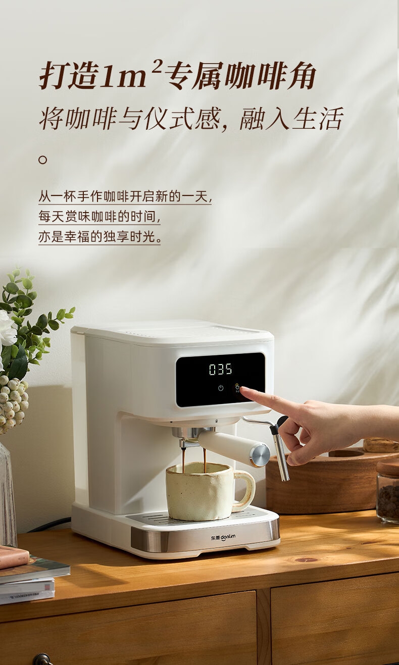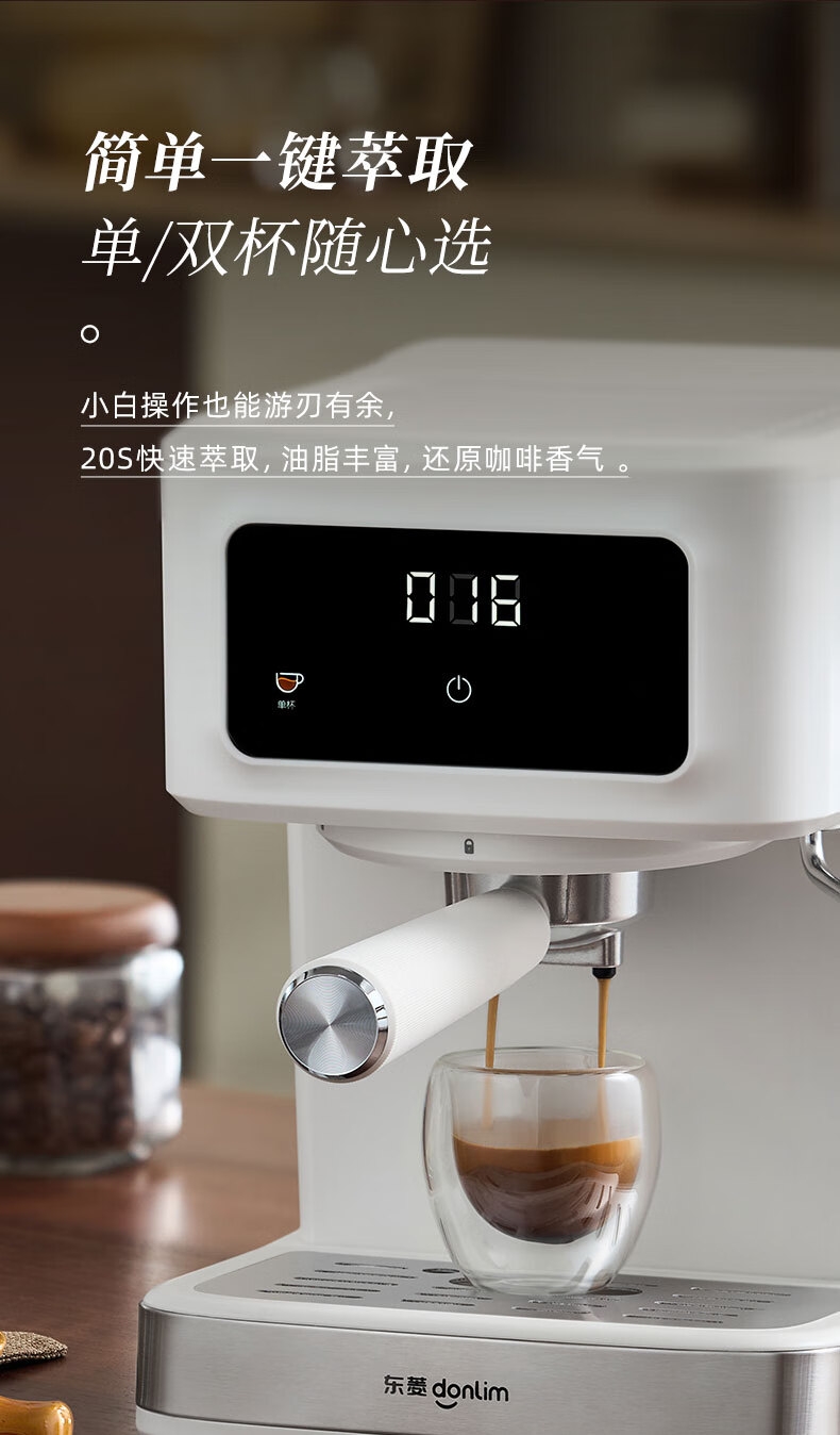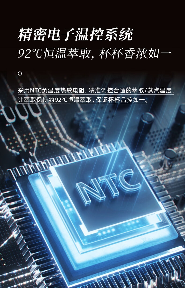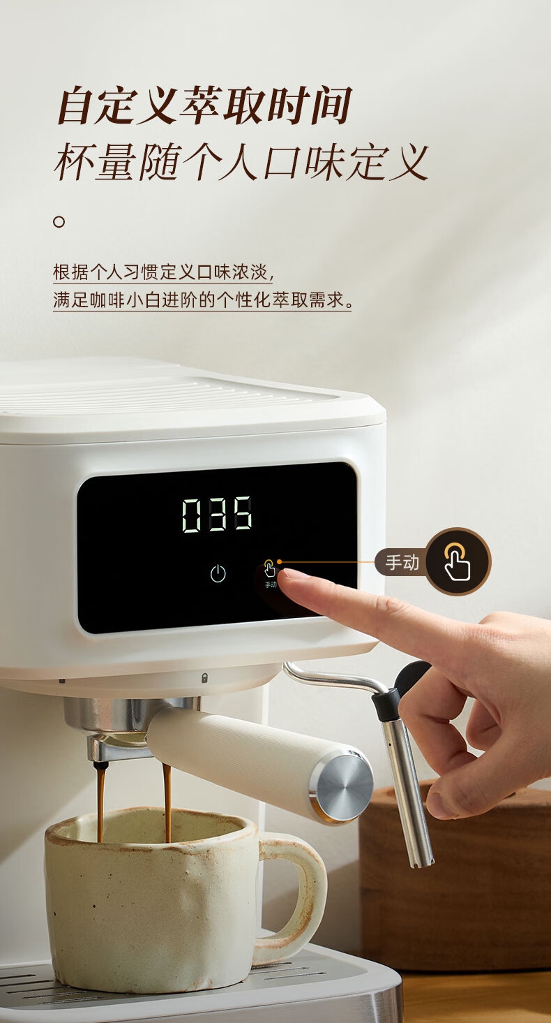 简单一键萃取,单/双杯随心选;15Bar充足压力,专业预浸泡系统;可视化智触彩屏,萃取时间更直观