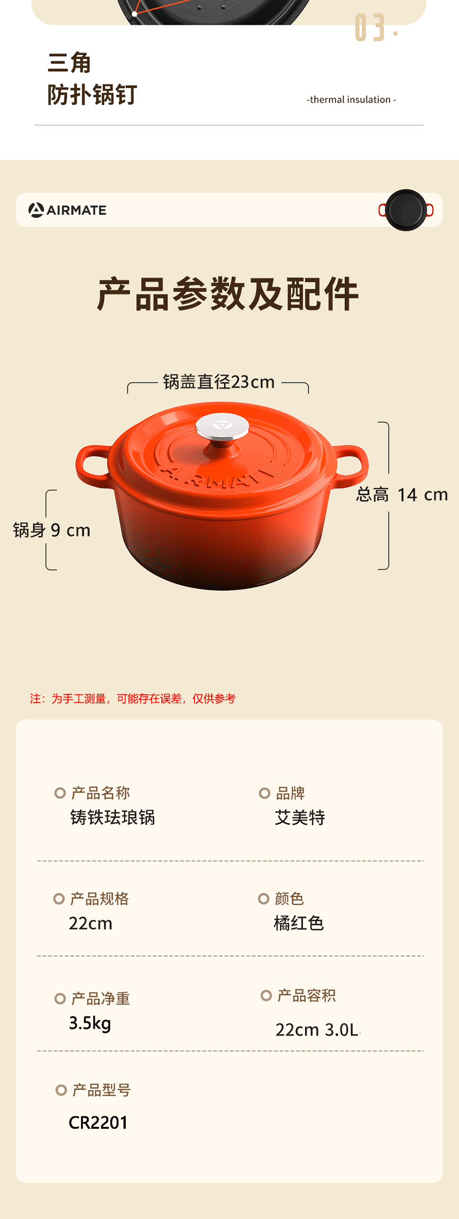 艾美特 铸铁珐琅锅22cmCR2201