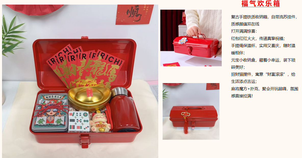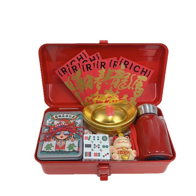 配置:复古手提铁质收纳箱 手提绳保温杯 元宝小收纳盒 招财猫摆件 麻将魔方+扑克