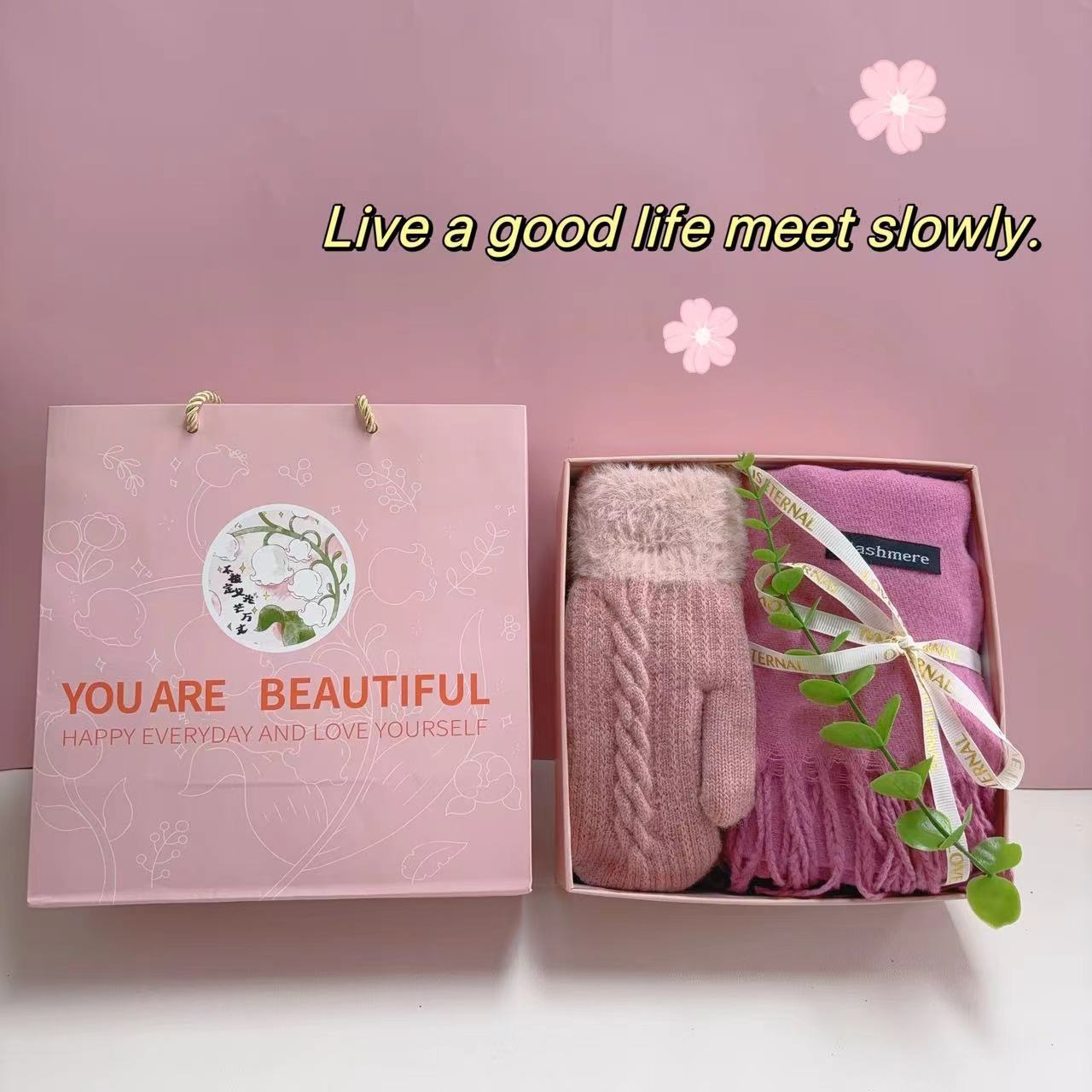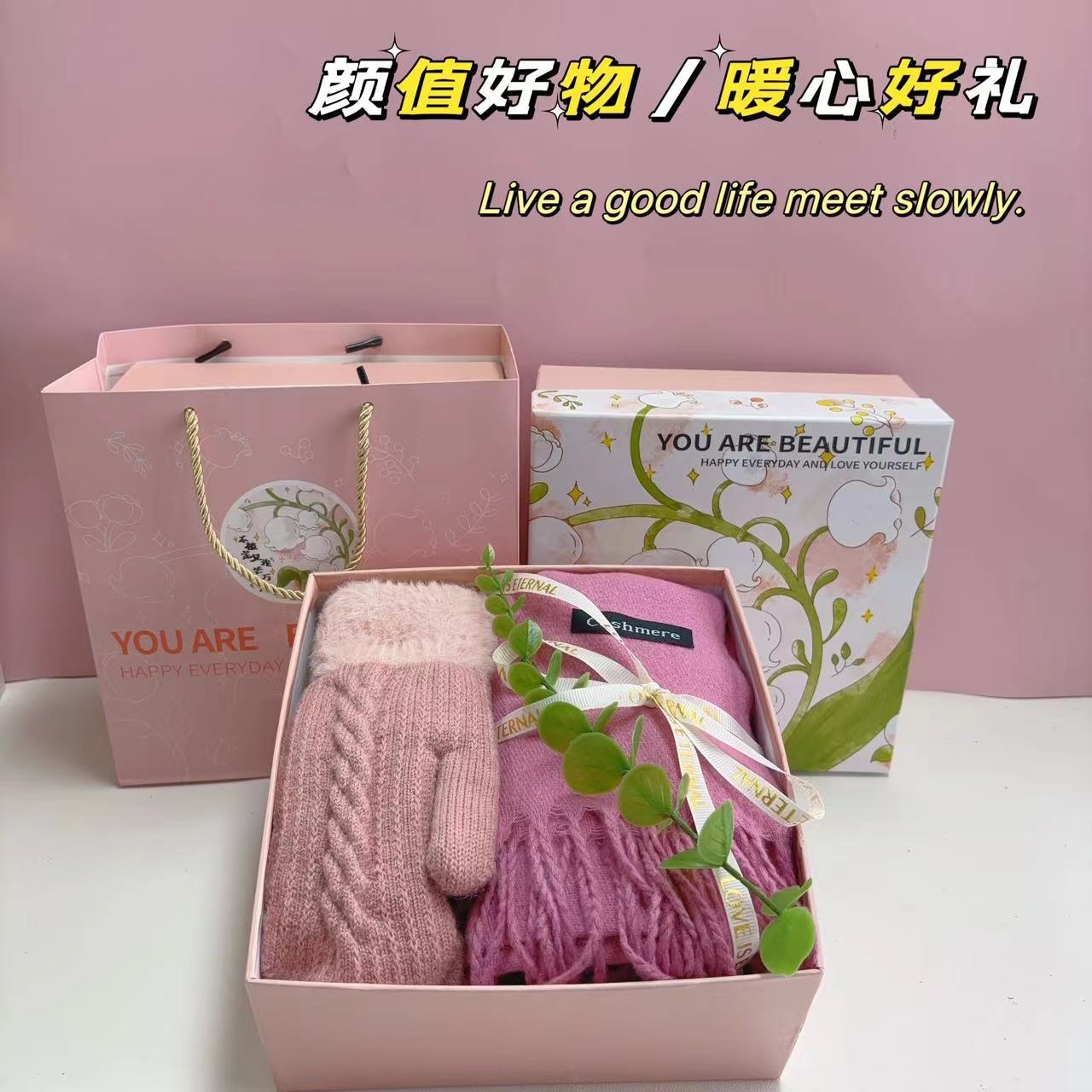 配置:礼盒 20*20*9 手提袋21*21*10 围巾寸200*70㎝ 手套