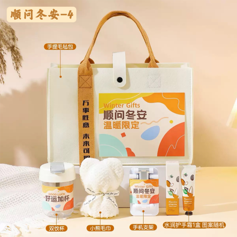 顺问冬安套装4:手提毛毡包35*23*10 双饮杯300ml 小熊毛巾 手机支架 水润护手霜