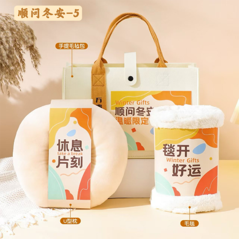 顺问冬安套装5:手提毛毡包35*23*10 U型枕35*35 毯子70*100CM