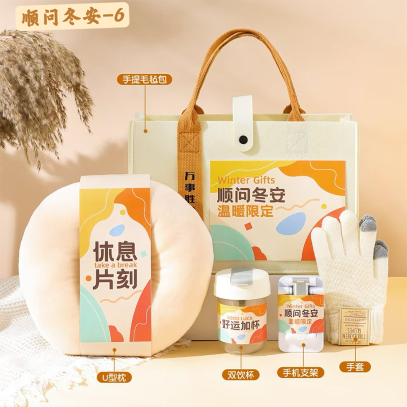 顺问冬安套装6:手提毛毡包35*23*10 U型枕 双饮杯300ml 手机支架可折叠 加绒手套
