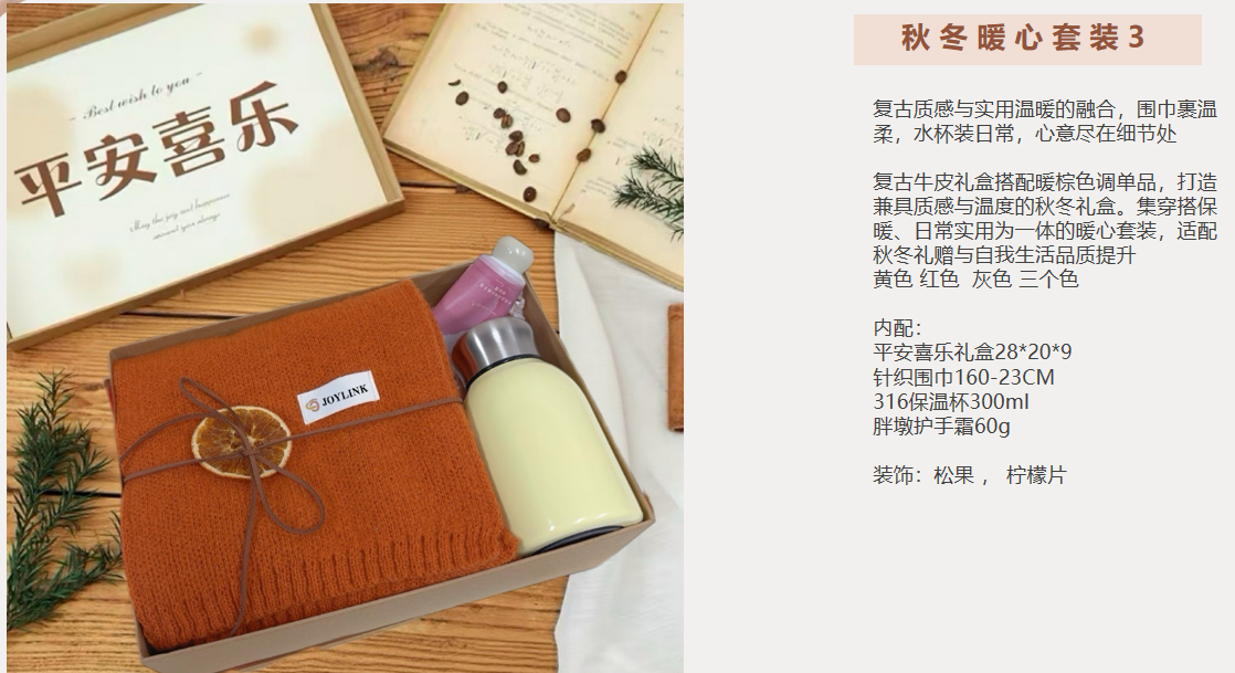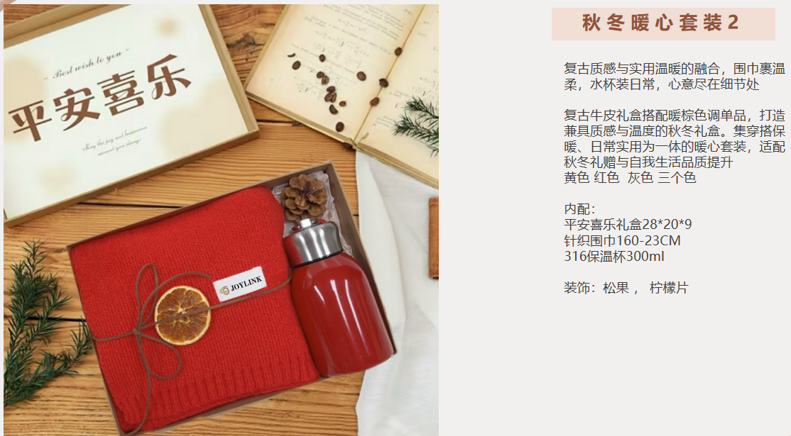 暖心套装2:平安喜乐礼盒28*20*9 针织围巾160-23CM 316保温杯300ml 装饰:松果 , 柠檬片