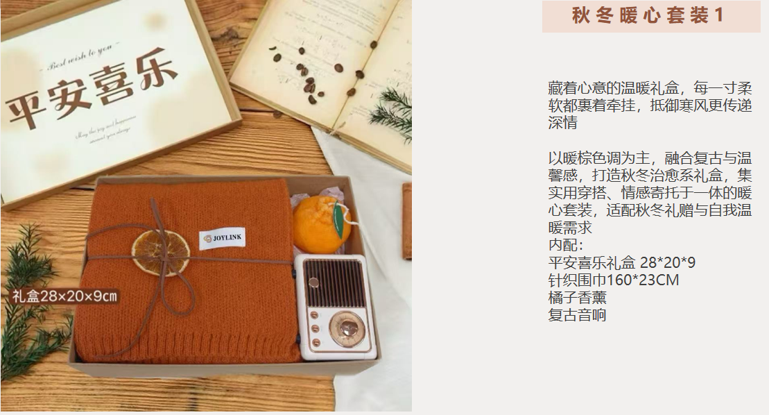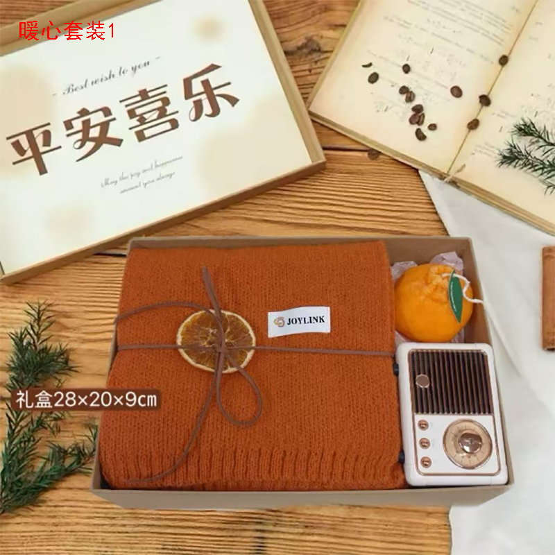 暖心套装1:平安喜乐礼盒 28*20*9 针织围巾160*23CM 橘子香薰 复古音响