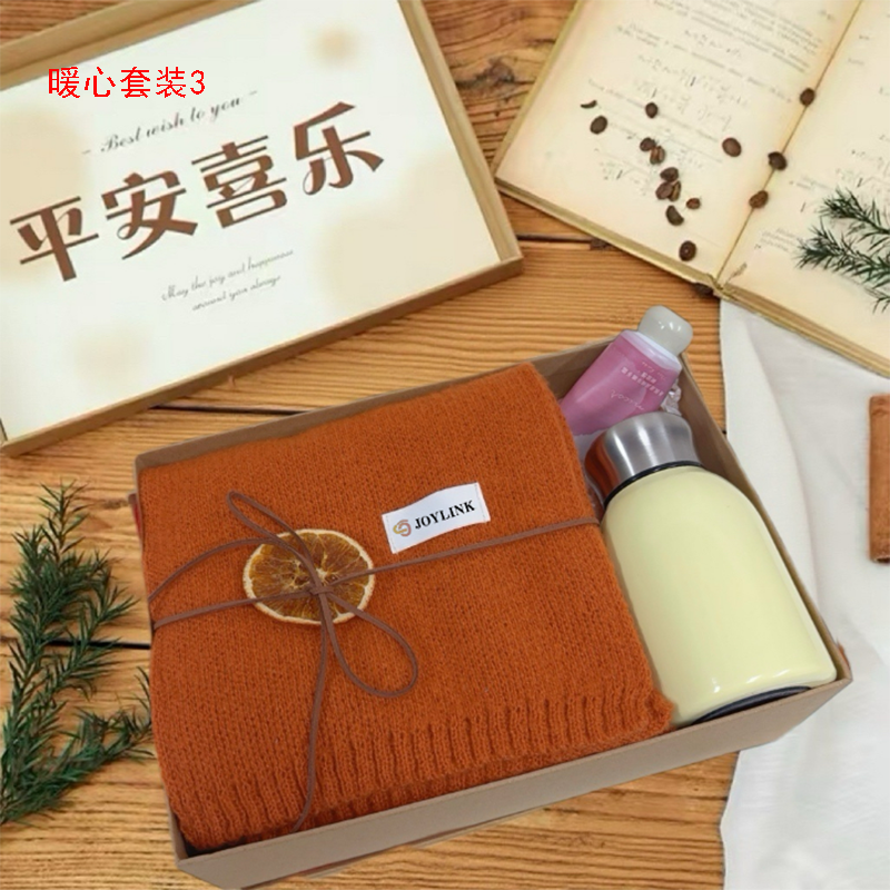 暖心套装3:平安喜乐礼盒28*20*9 针织围巾160-23CM 316保温杯300ml 胖墩护手霜60g 装饰:松果 , 柠檬片