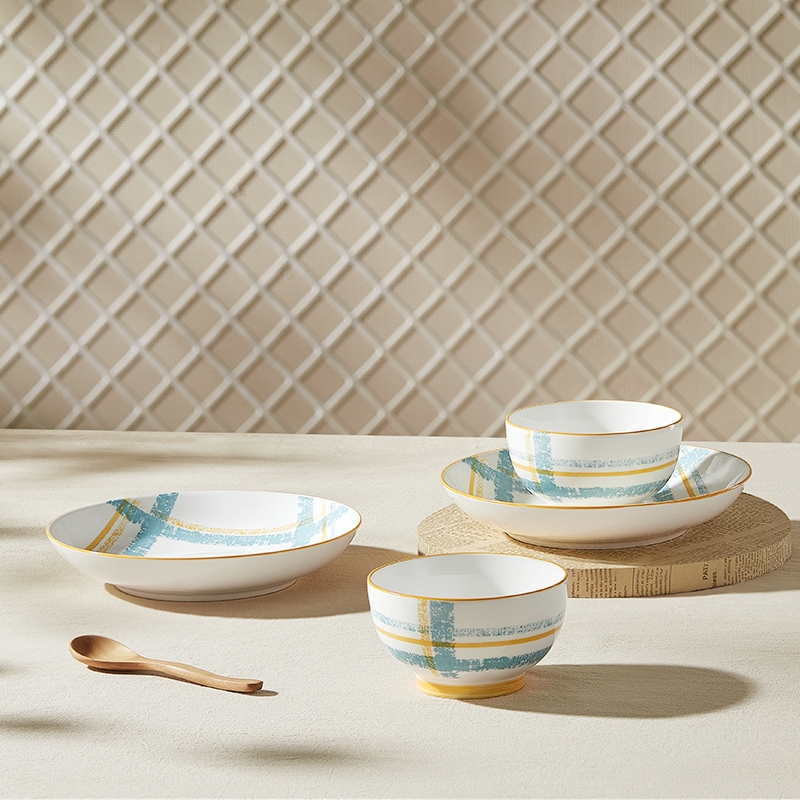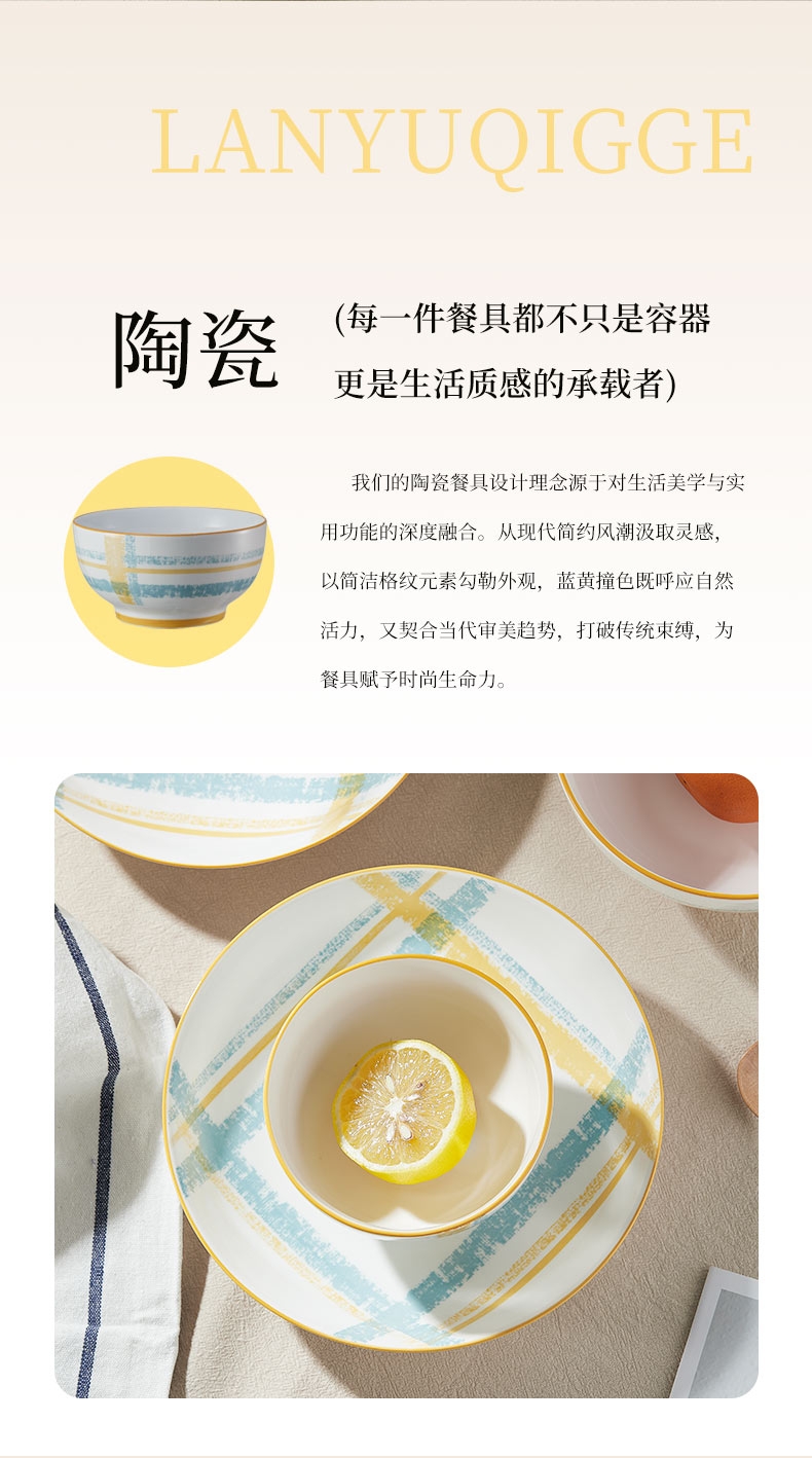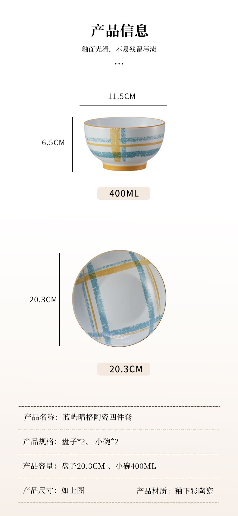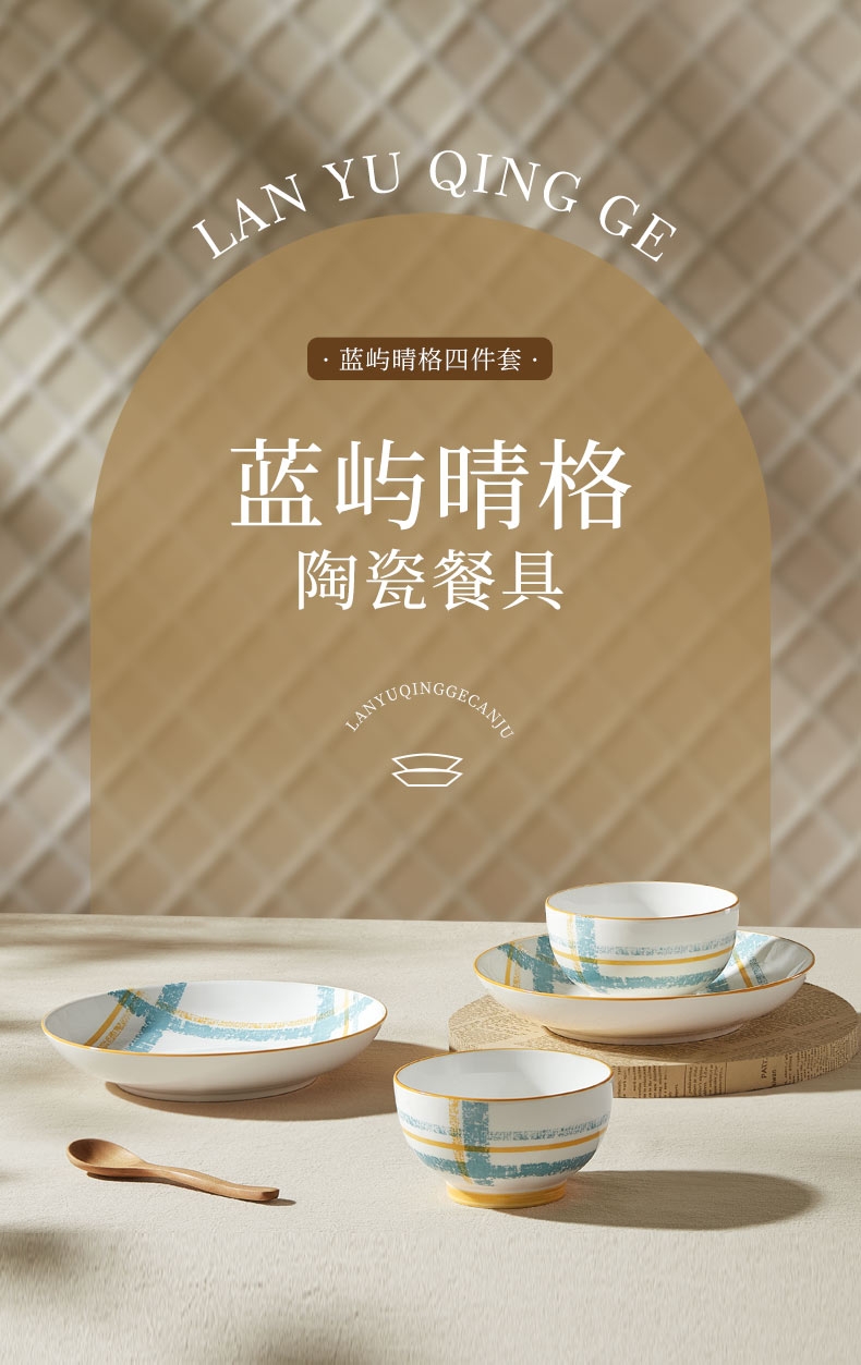 釉夏 蓝屿晴格陶瓷餐具四件套开门红