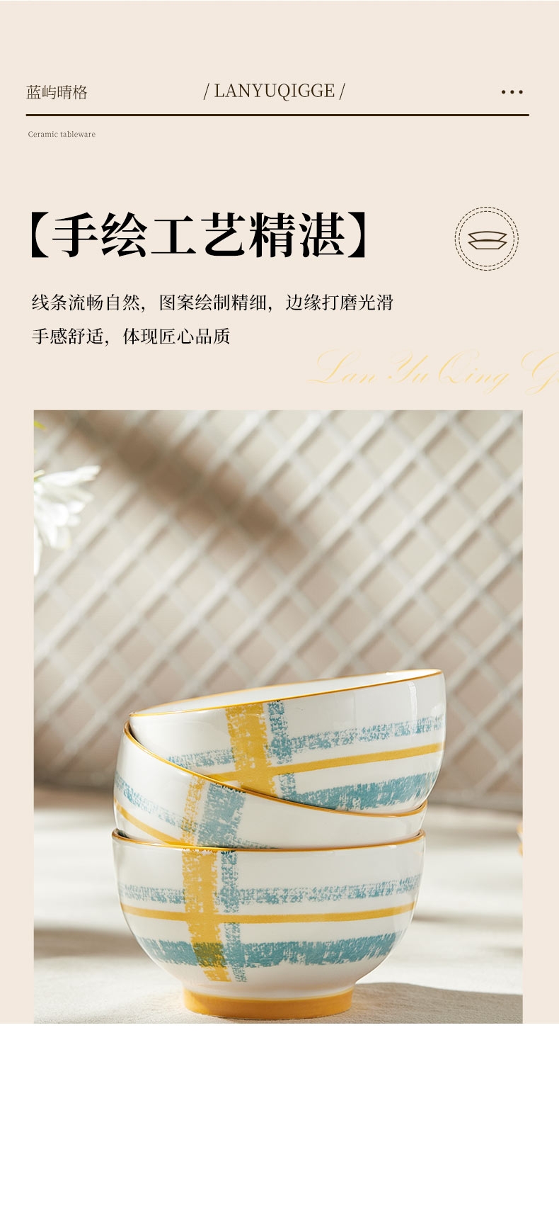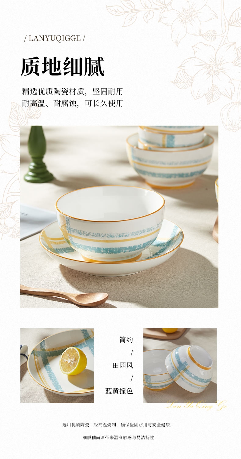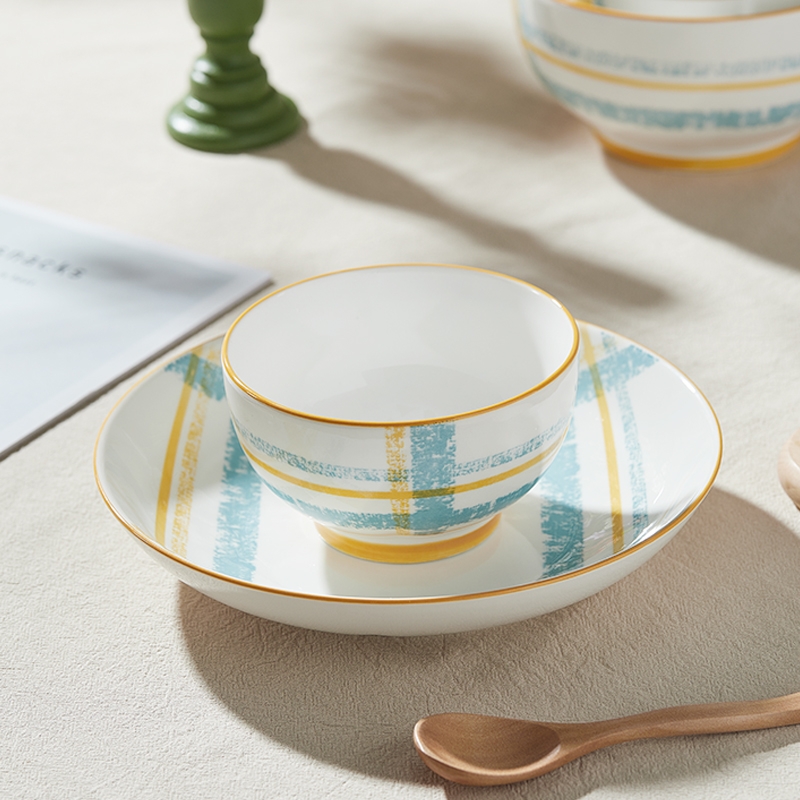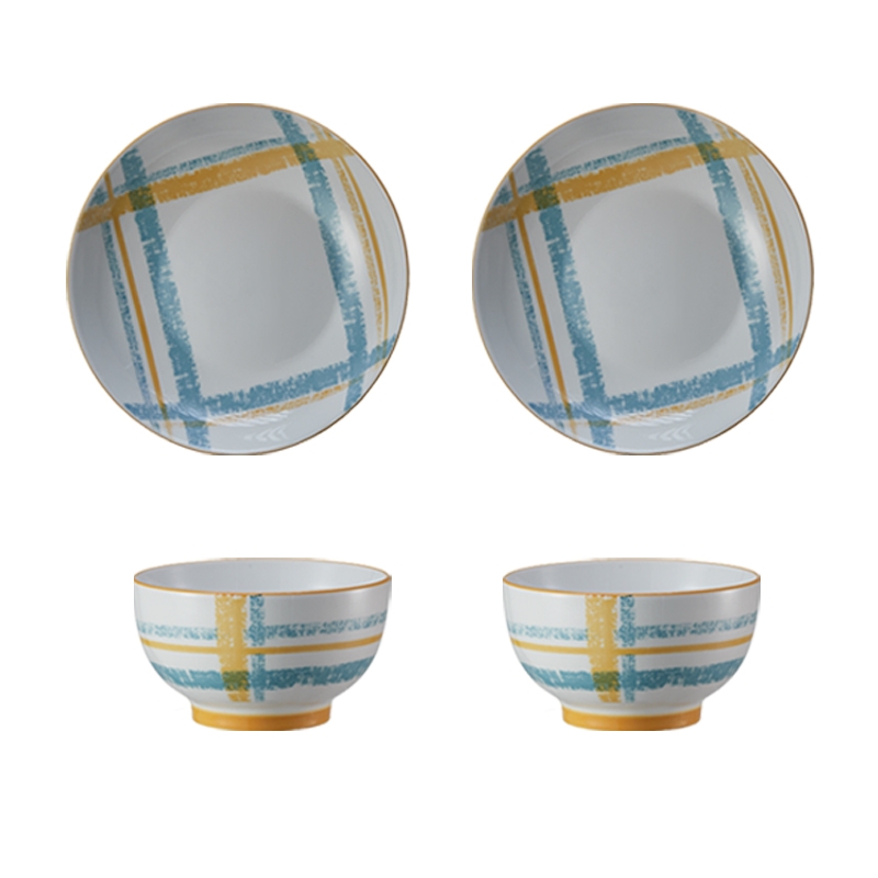 釉夏 蓝屿晴格陶瓷餐具四件套开门红