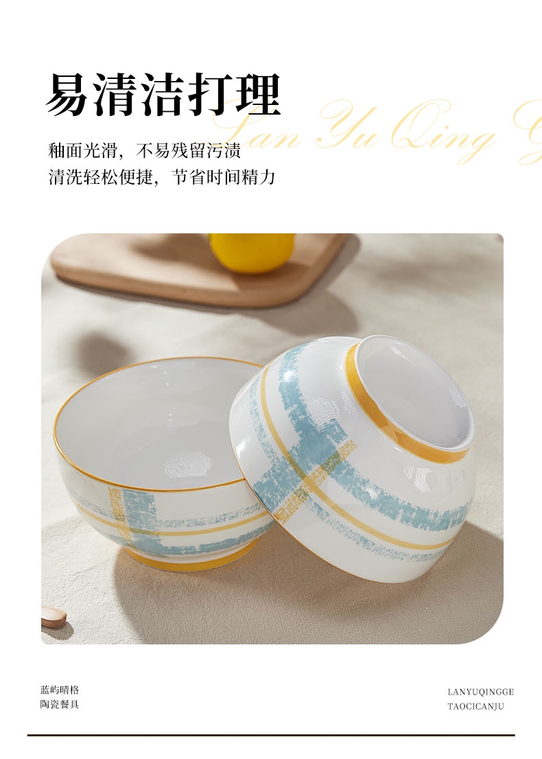 厚实瓷质,隔热防烫,外观色彩清新、光洁透亮;釉面光滑细腻,久用不褪色,釉下彩工艺;底部不上釉防滑设计,防滑更平稳