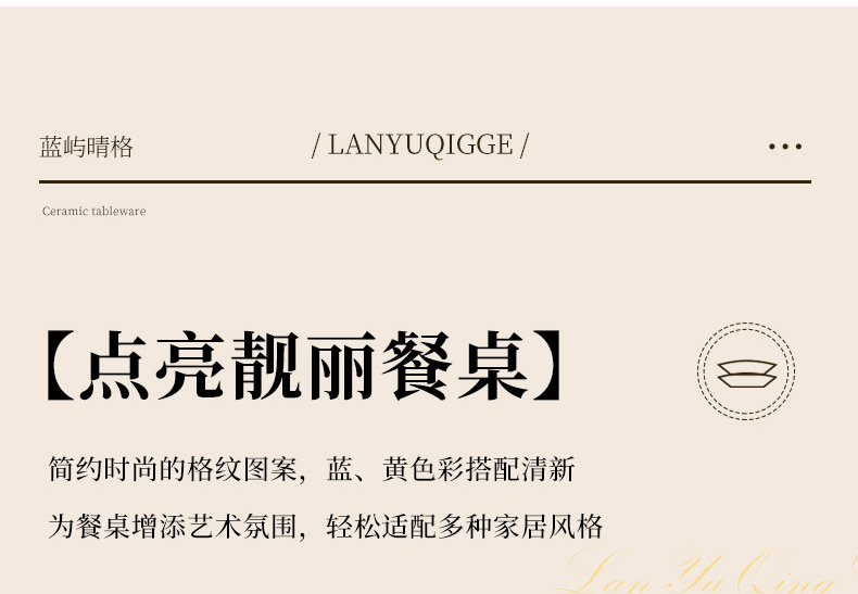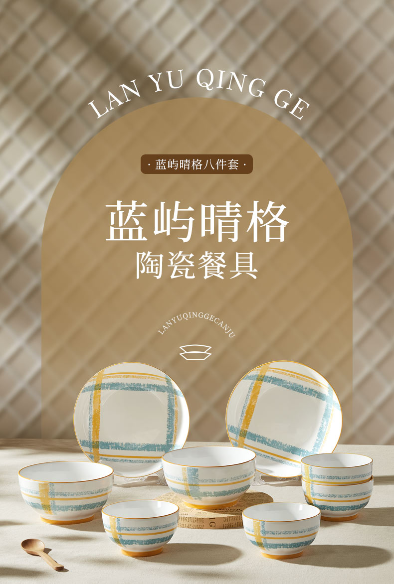 釉夏 蓝屿晴格陶瓷餐具八件套开门红
