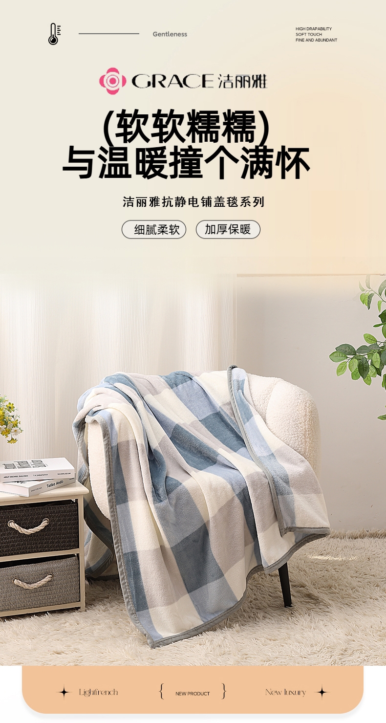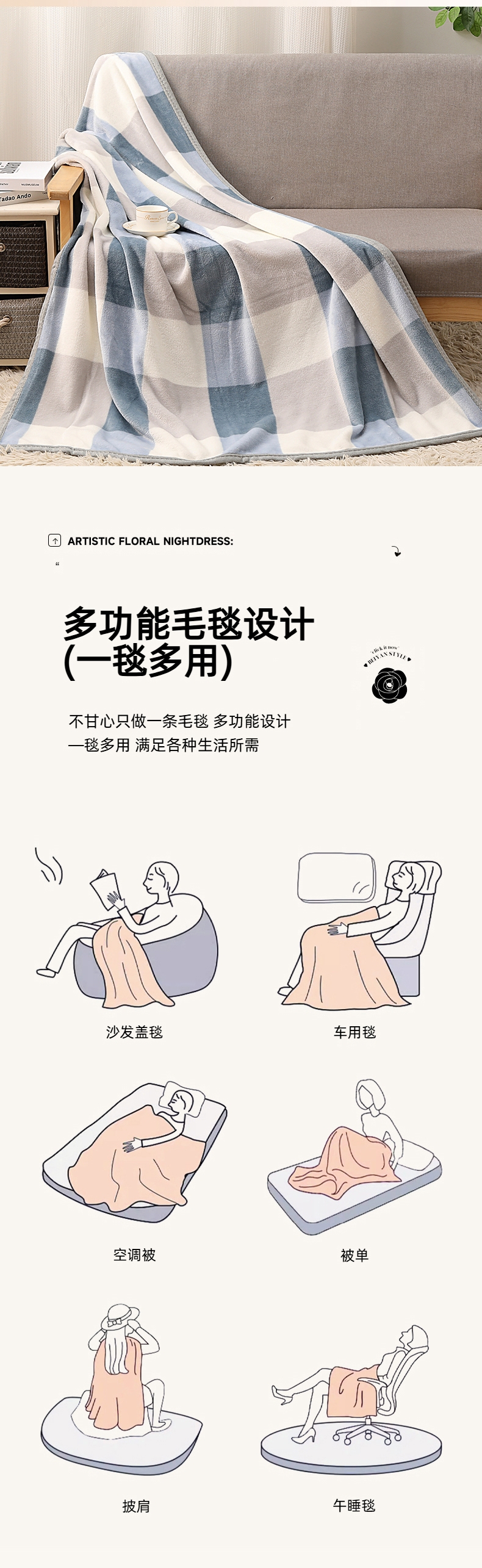 洁丽雅 蓝调.柔软亲肤办公室休闲盖毯JLY25101