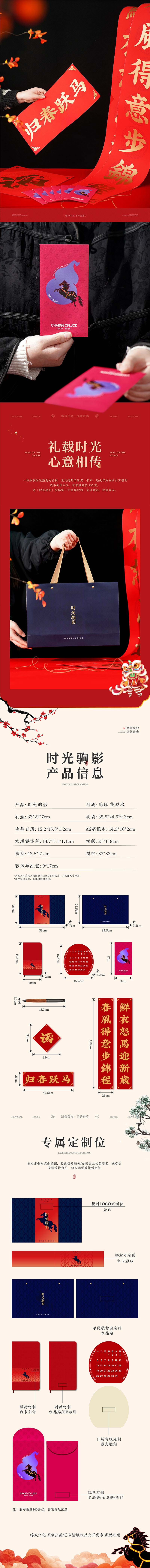 配置清单:毛毡日历*1 A6笔记本*1 木质签字笔*1 马年春联*1套 春风马红包*6 礼盒*1 礼袋*1