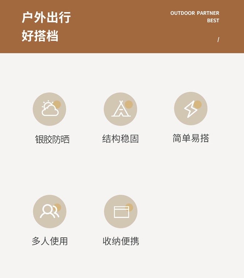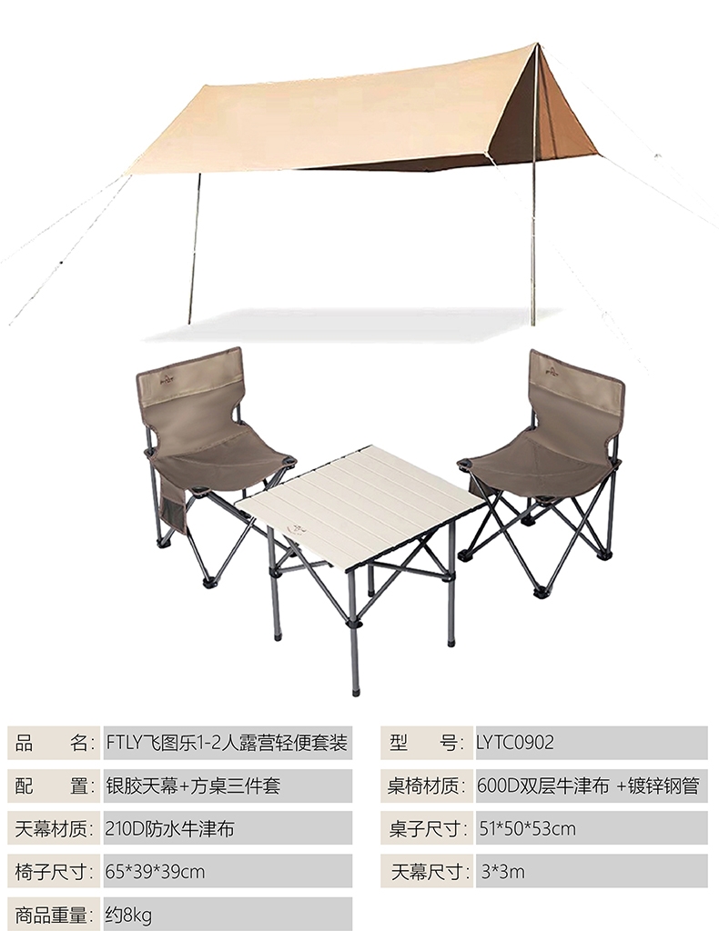 防晒UPF50+ 防水:pu1500+,有效防;手提包收纳设计,收放自如;;一桌两椅,折叠收纳,不占空间 ;