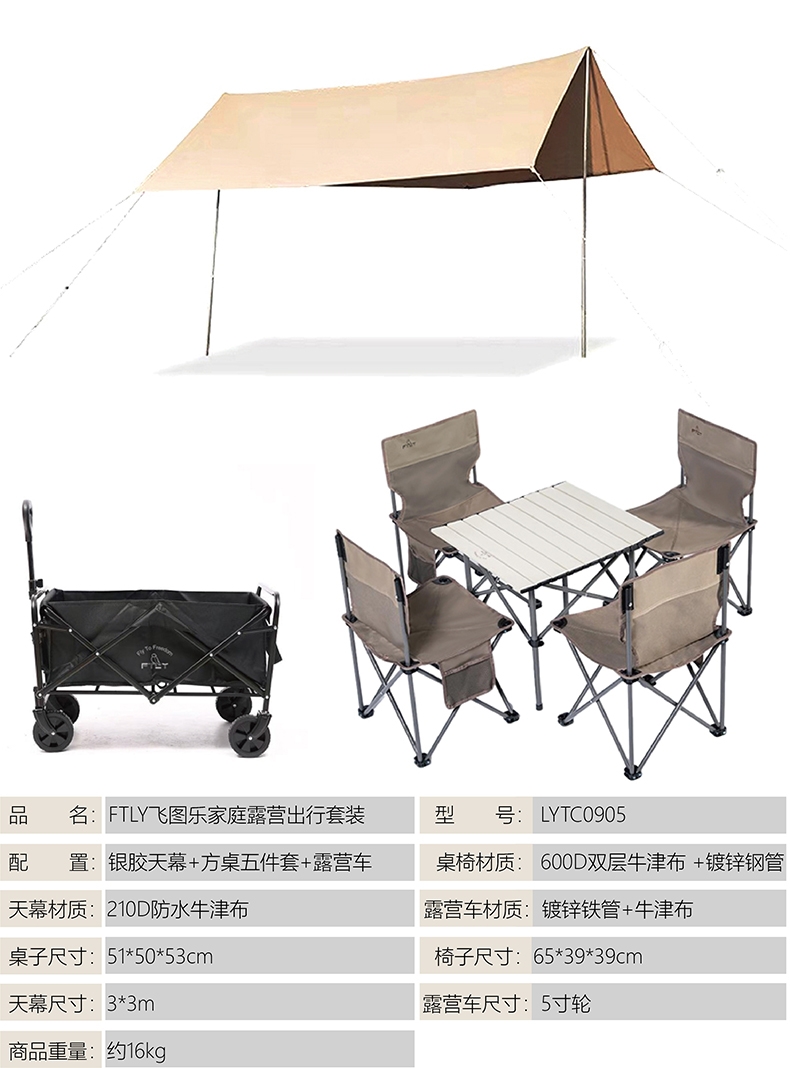 防晒UPF50+ ,防水pu1500+,有效防晒防;一桌四椅,折叠收纳,不占空间 ;;金属车架,精选牛津布,轻便拖拉;