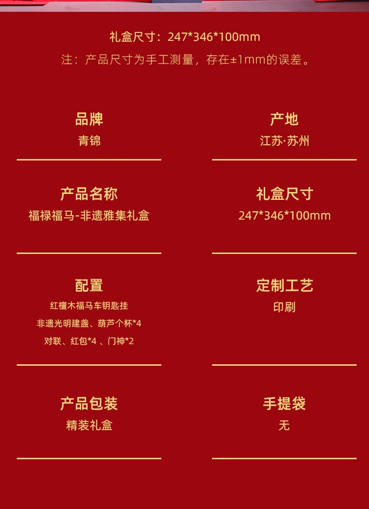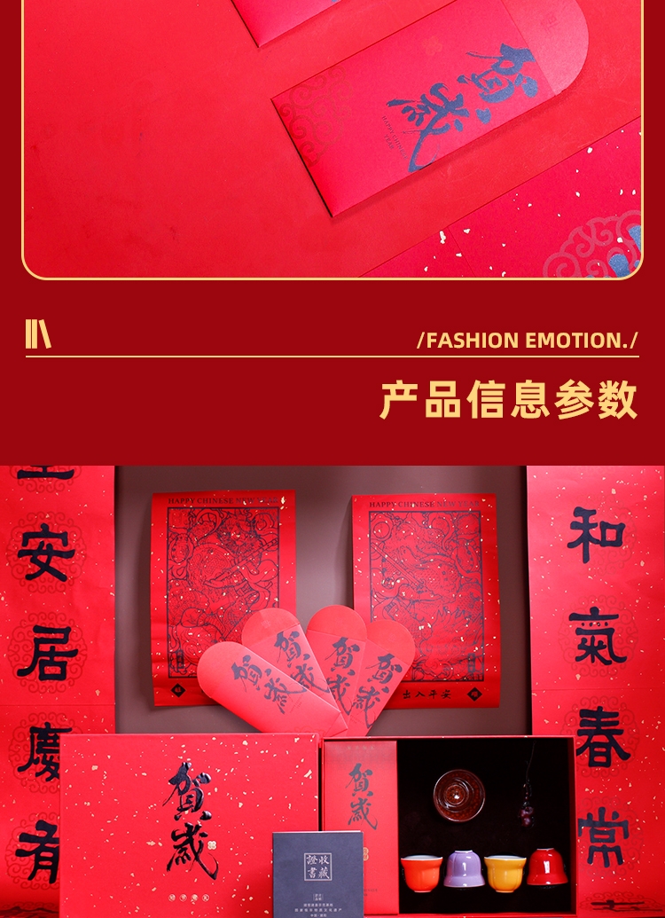 配置清单:红檀木福马车钥匙挂x1 非遗光明红鹧鸪斑葫芦建盏x1 葫芦个杯x4色(颜色可以选) 对联*1-红包*4 门神*2 精装礼盒手提袋*1