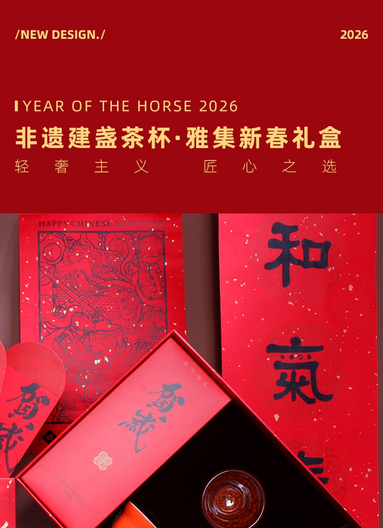 青锦 福禄福马.贺岁非遗创意建盏套装