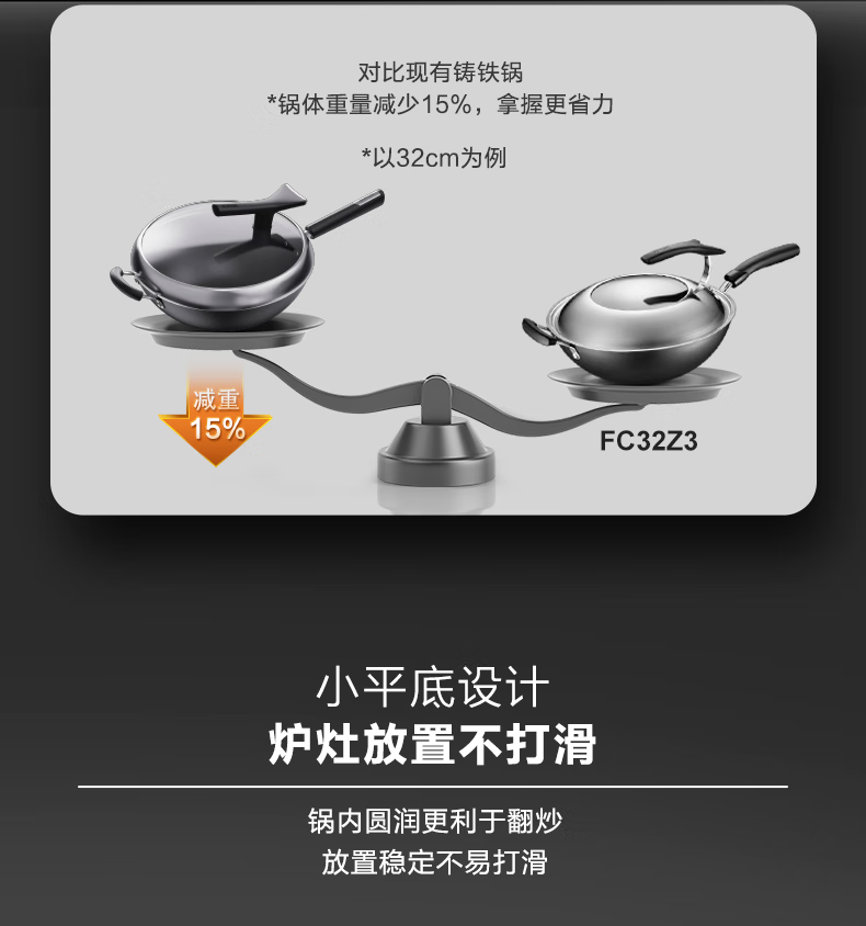 苏泊尔 34cm真不锈铸铁炒锅FC34ZBX1