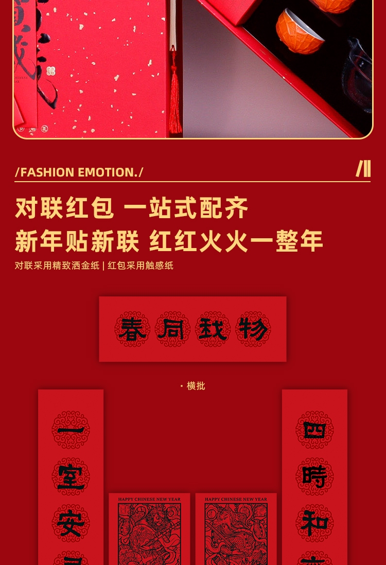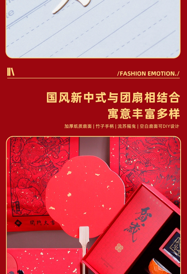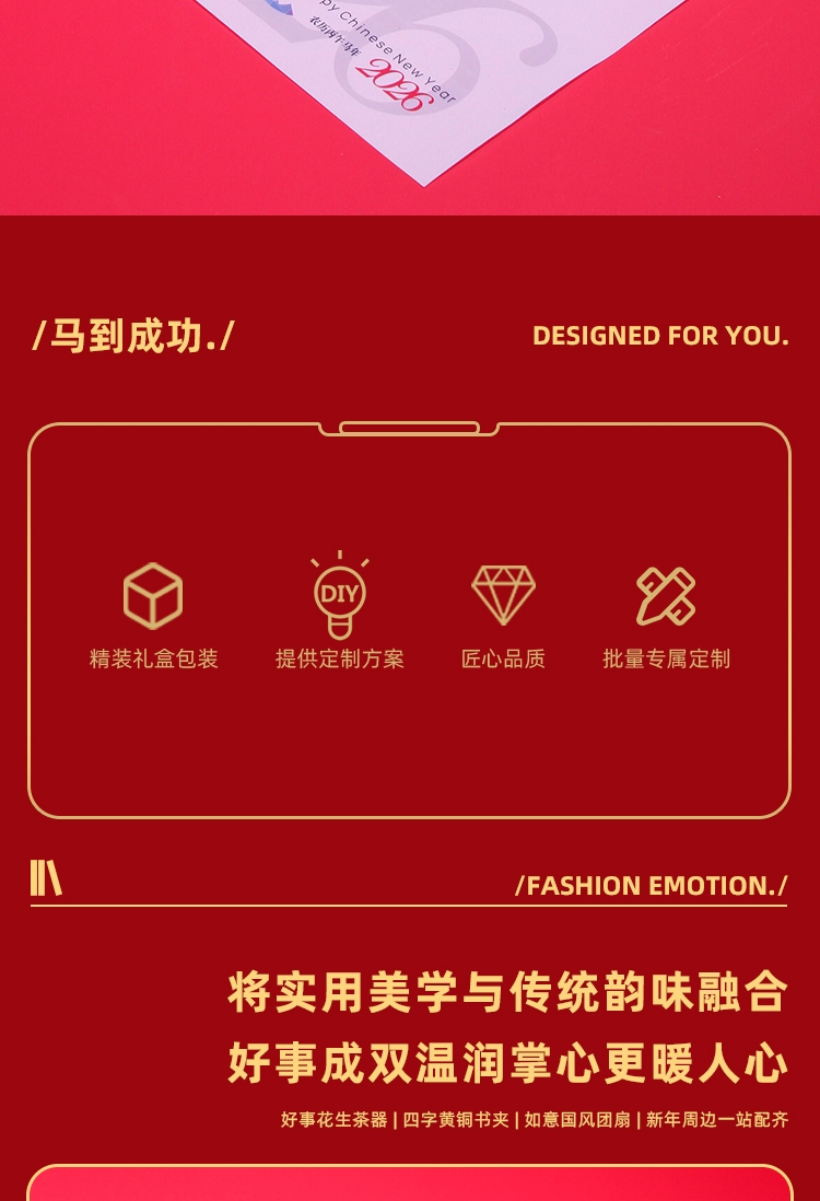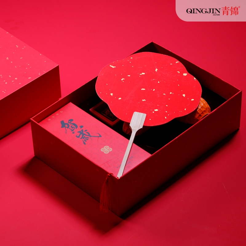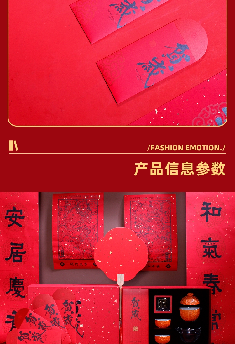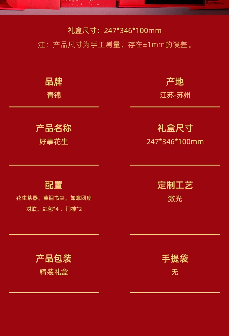 配置清单:花生茶器*1 如意团扇*1 黄铜书夹*1 对联*1-红包*4 门神*2 精装礼盒手提袋*1