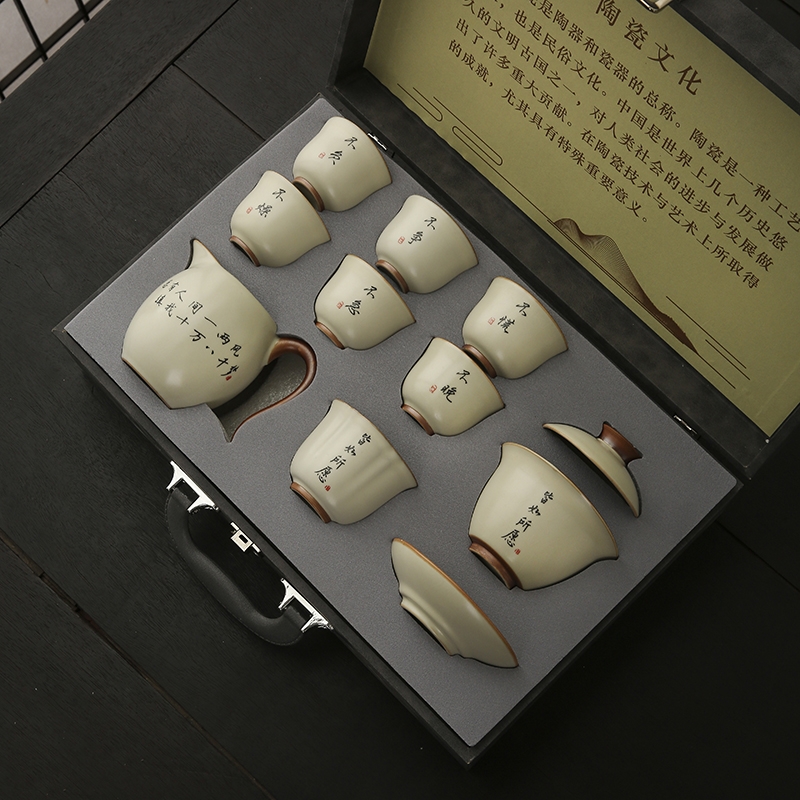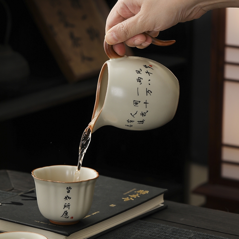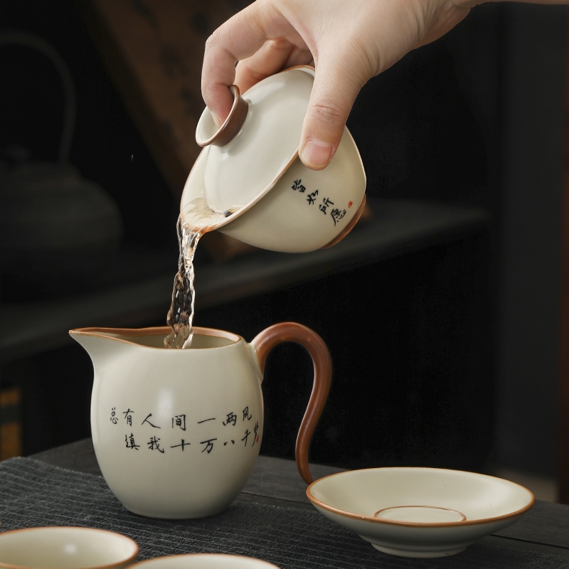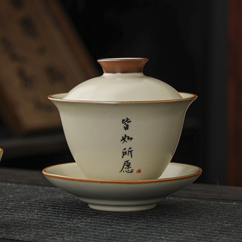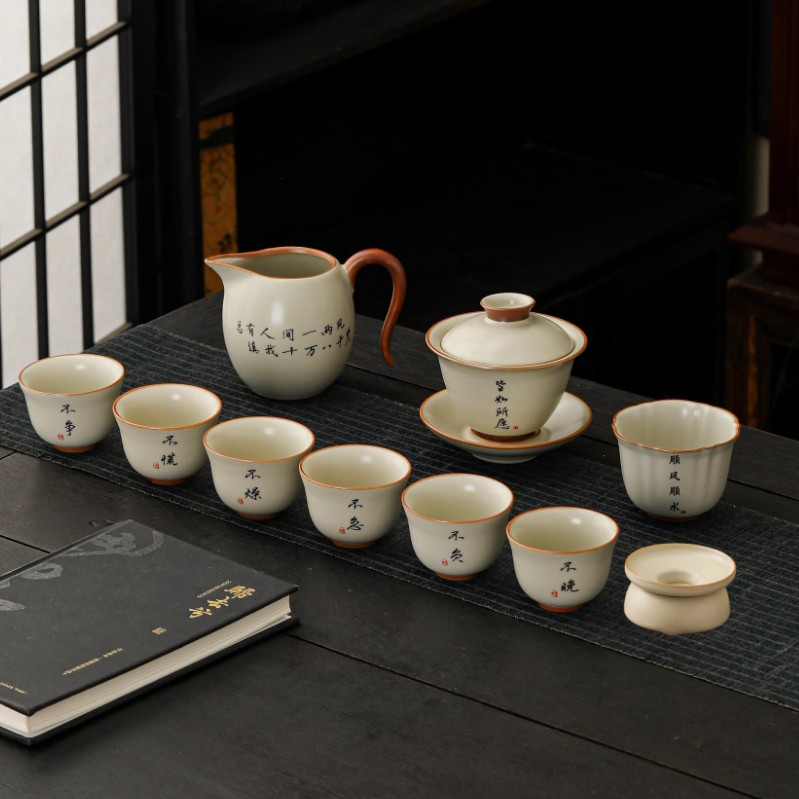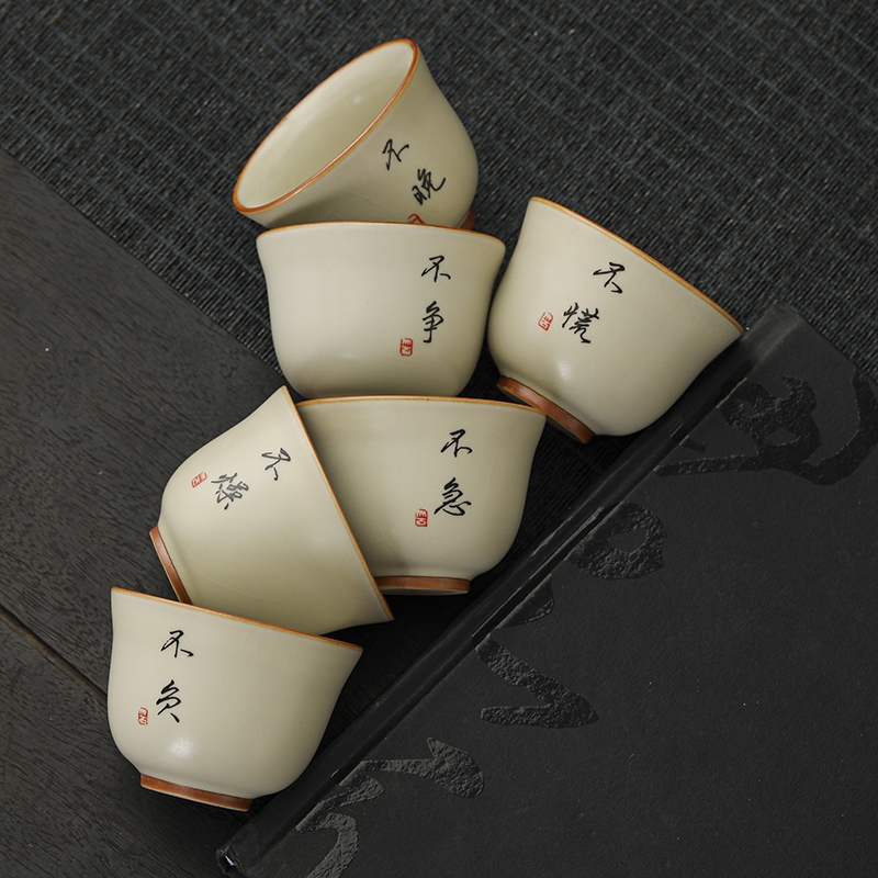 严选泥料经数十道工序,三次施釉,两道窑烧,大器天成;外壁玛瑙入釉,蕴润柔和,如脂似玉,肥厚莹润。;禅意开片,茶养金线,开片成画,承载岁月诗情。;创意书法入瓷,寄心情于茶水间,谈笑间抒发人生感悟。