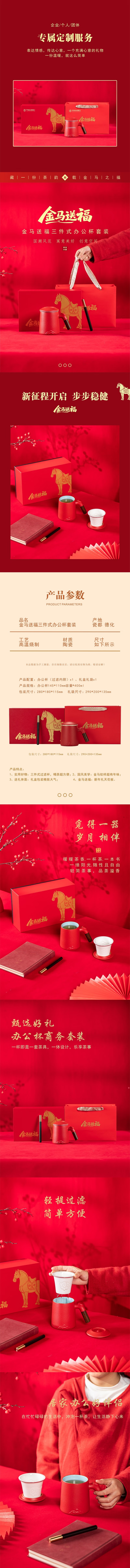 东悦 开门红金马送福三件式办公杯套装JMSF-BG003