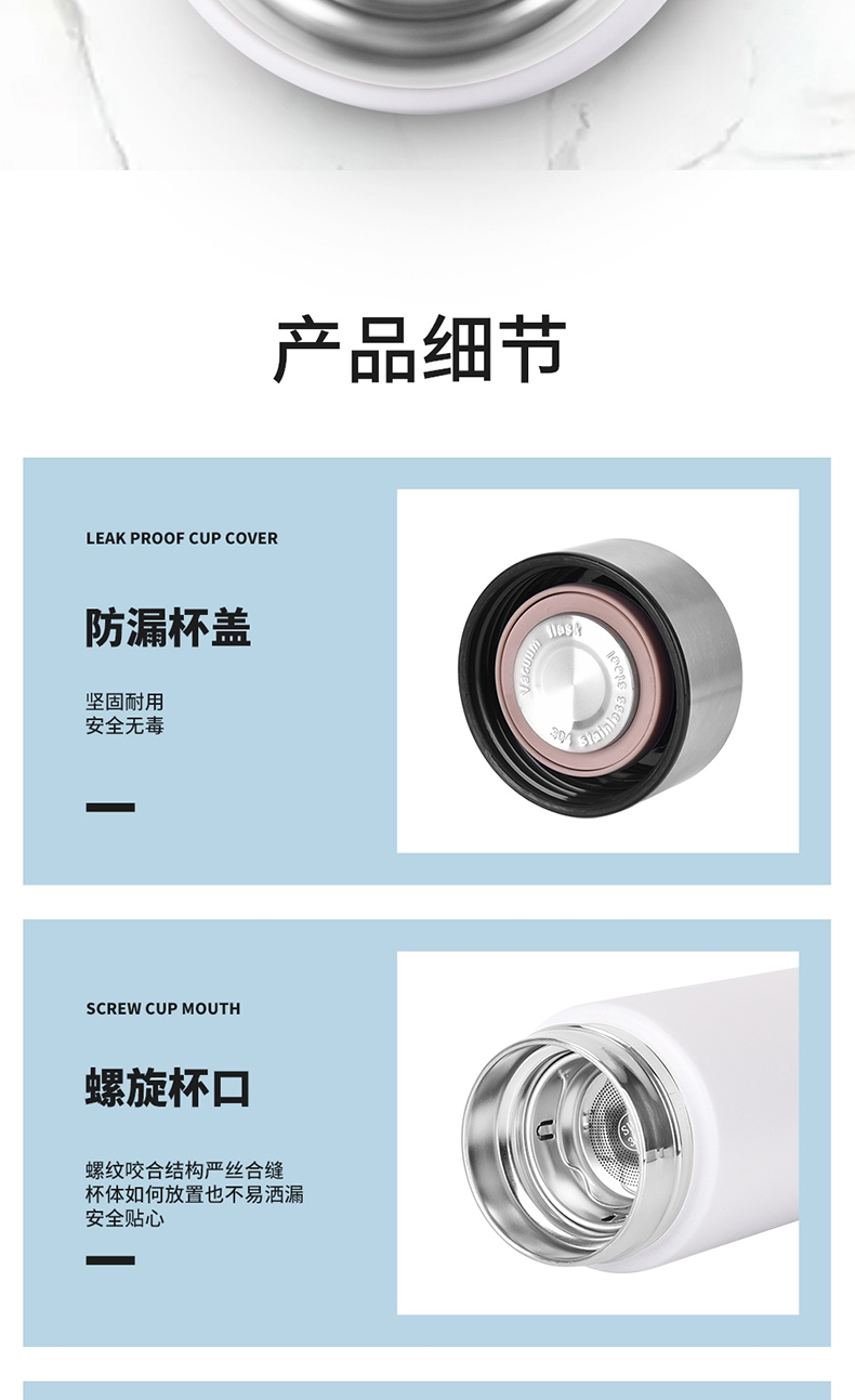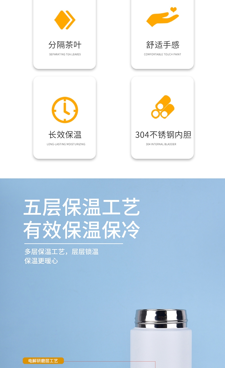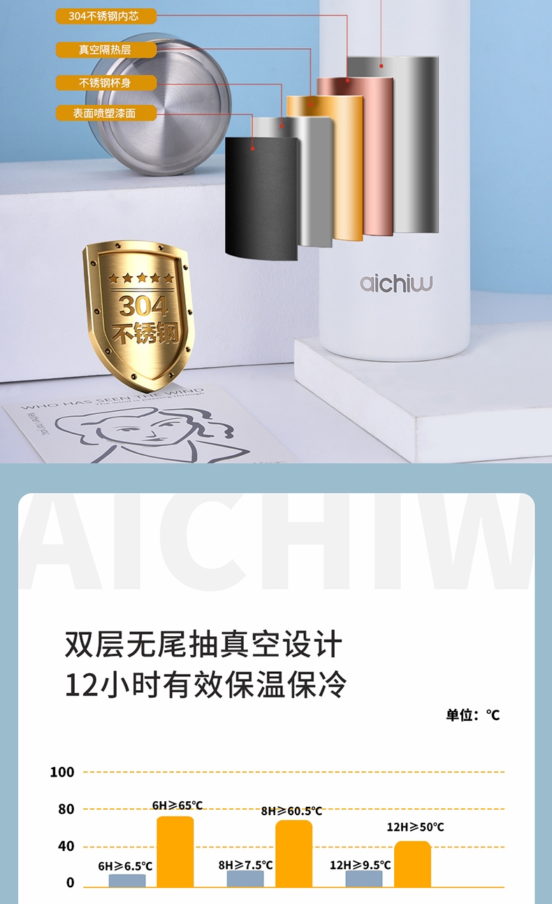 双层不锈钢内胆抽真空设计,高效保温;内胆表面采用电解研磨技术防止污垢产生,可食品接触用;外表面采用喷塑漆面,耐磨性能高,质感强