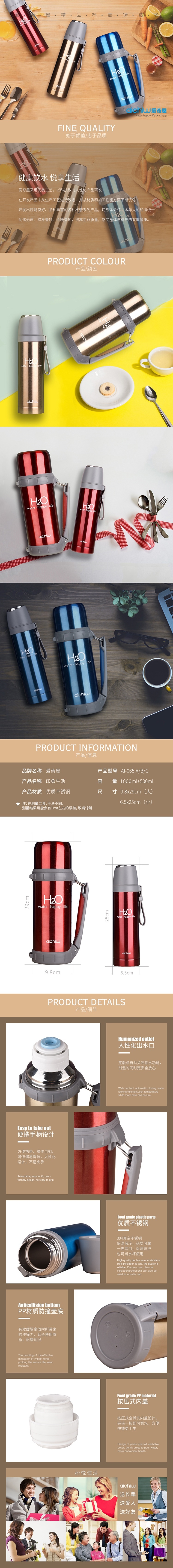 内胆表面采用电解研磨技术防止污垢产生,可食品接触用;杯盖、杯塞密封性良好无滴漏;大壶小杯设计,适合所有场合