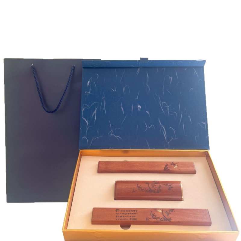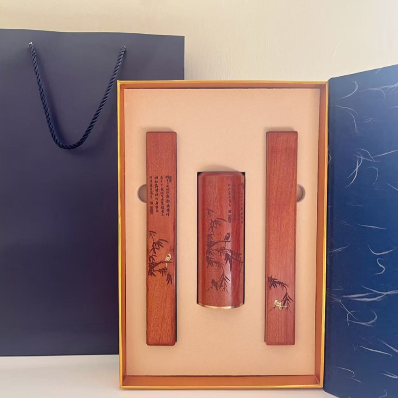 中式古风商务办公礼品套装;红木材质,精工雕刻;可定制logo