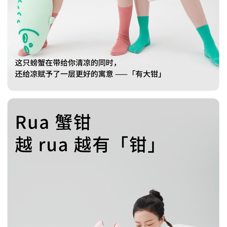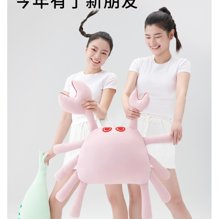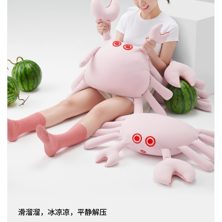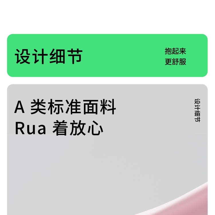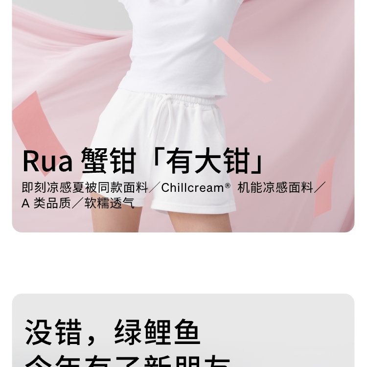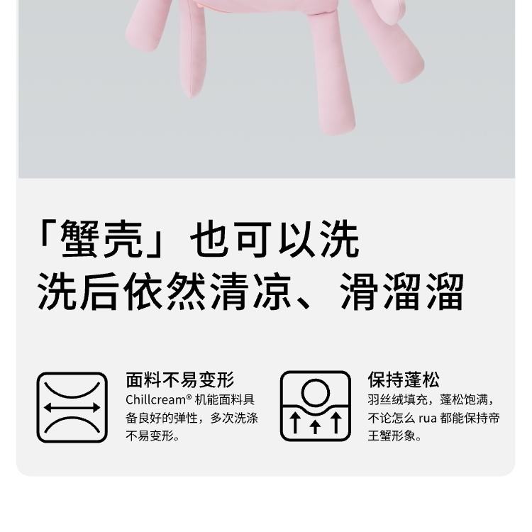 面料达到 A 类标准品质,贴身抱着更安心;羽丝绒填充,纤维蓬松结构;外套和蟹腿可以拆下来机洗,洗后依然清凉