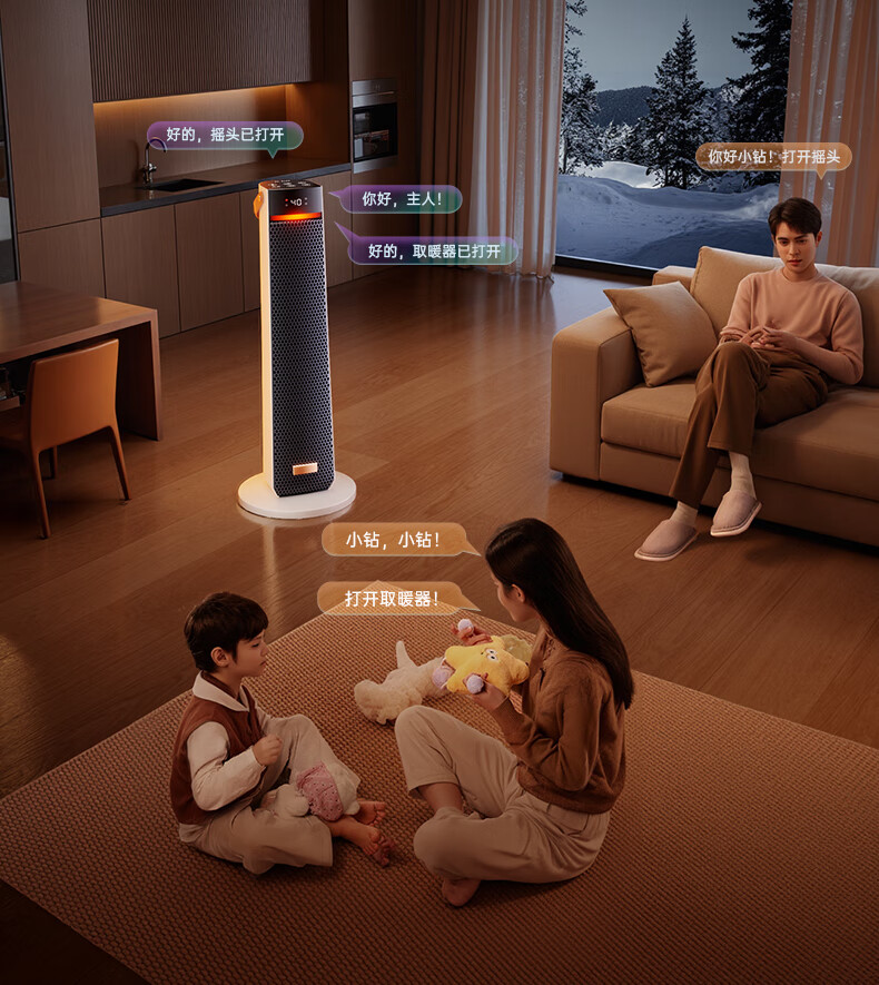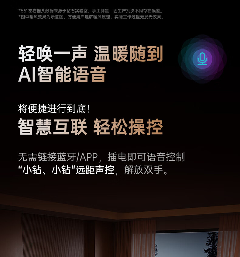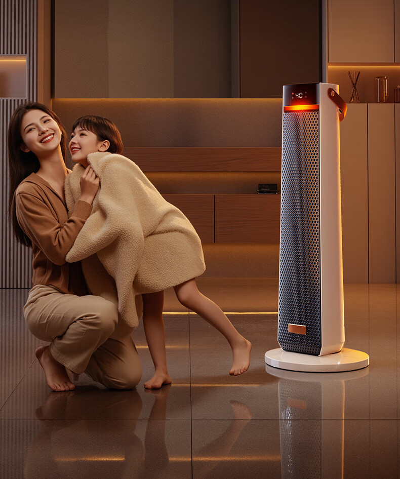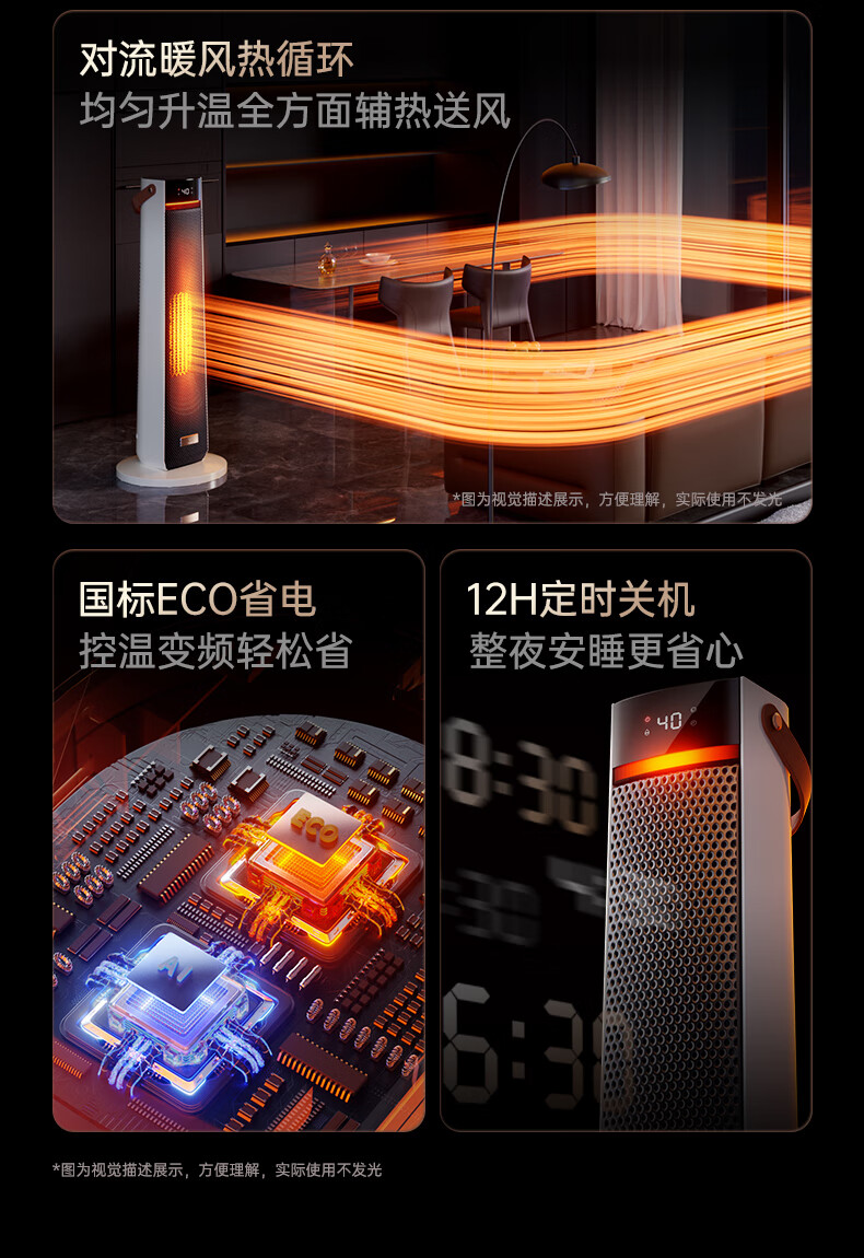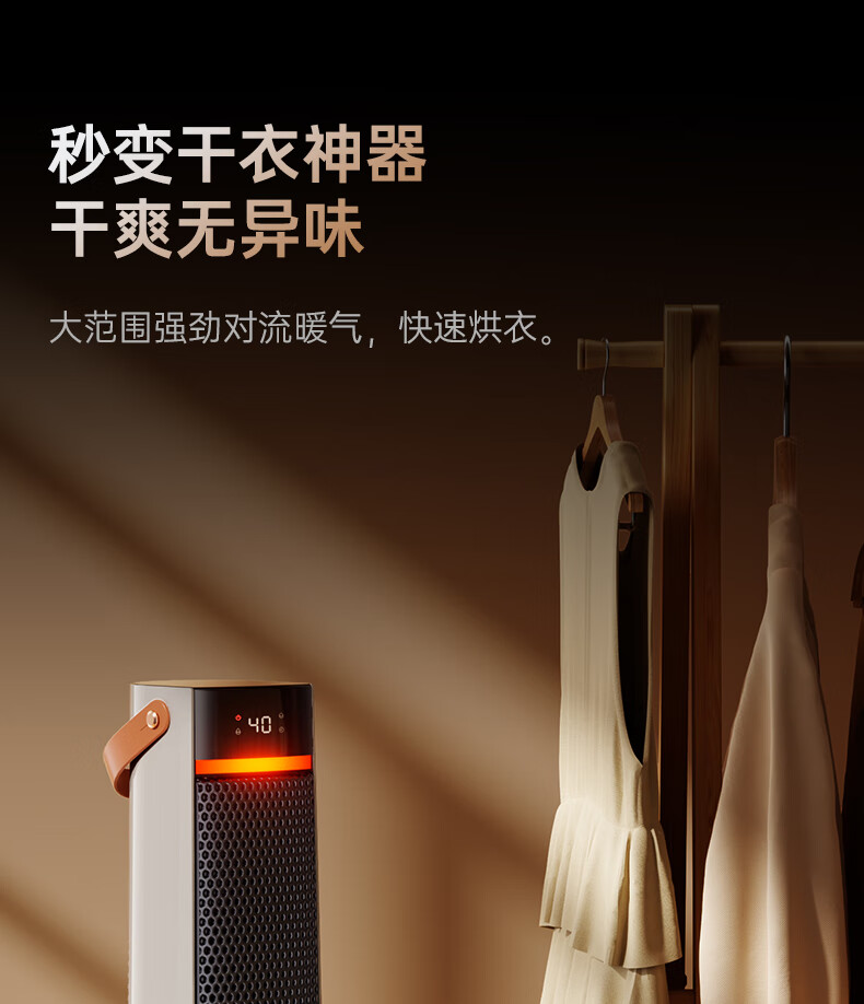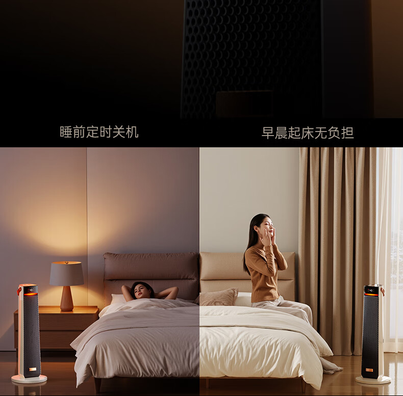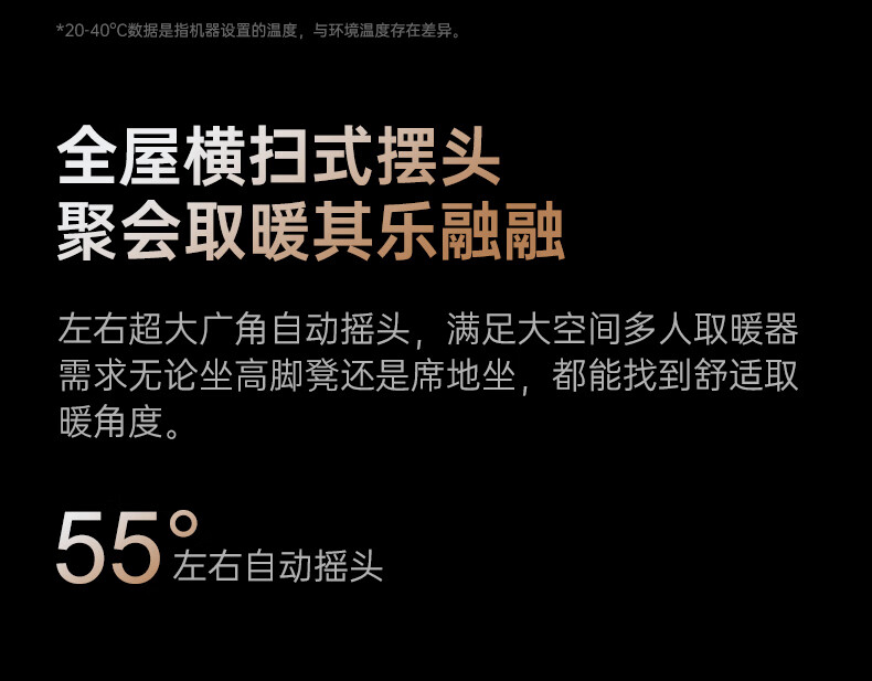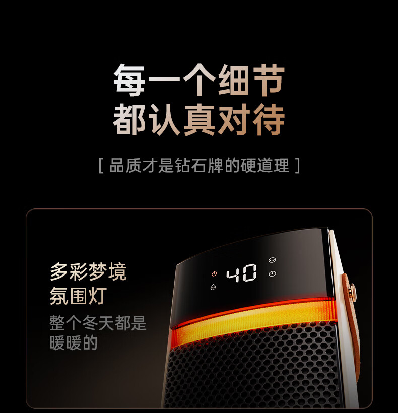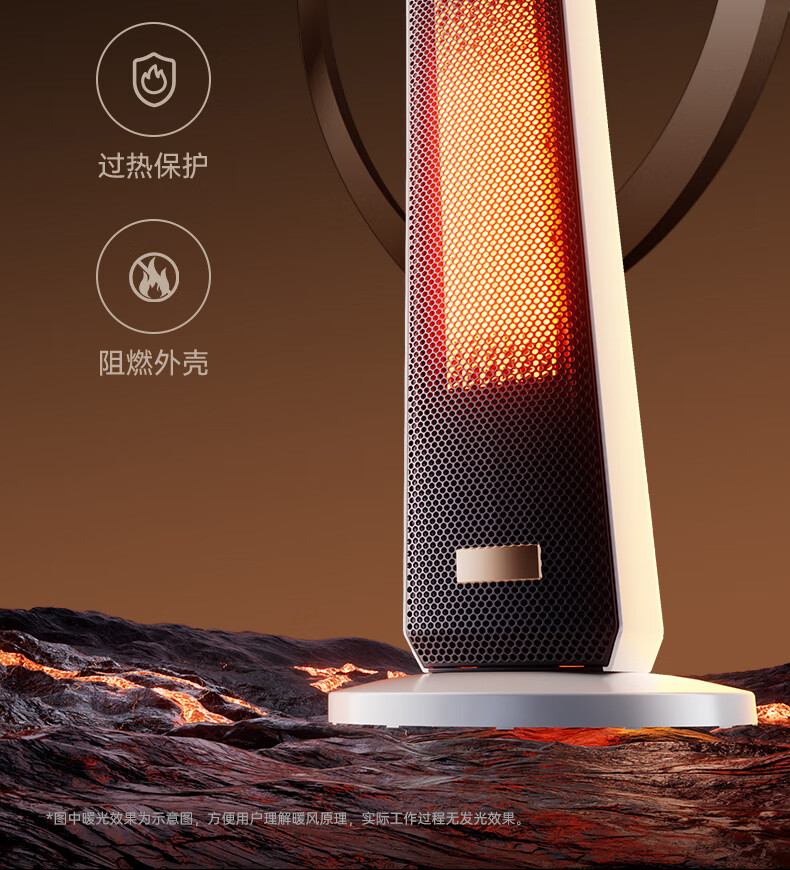 石墨烯PTC加热,2000W高功率加大出风口;加大出风口,热量翻倍温暖,适应各种环境;冬天取暖安全第一,3C认证保障母婴适用