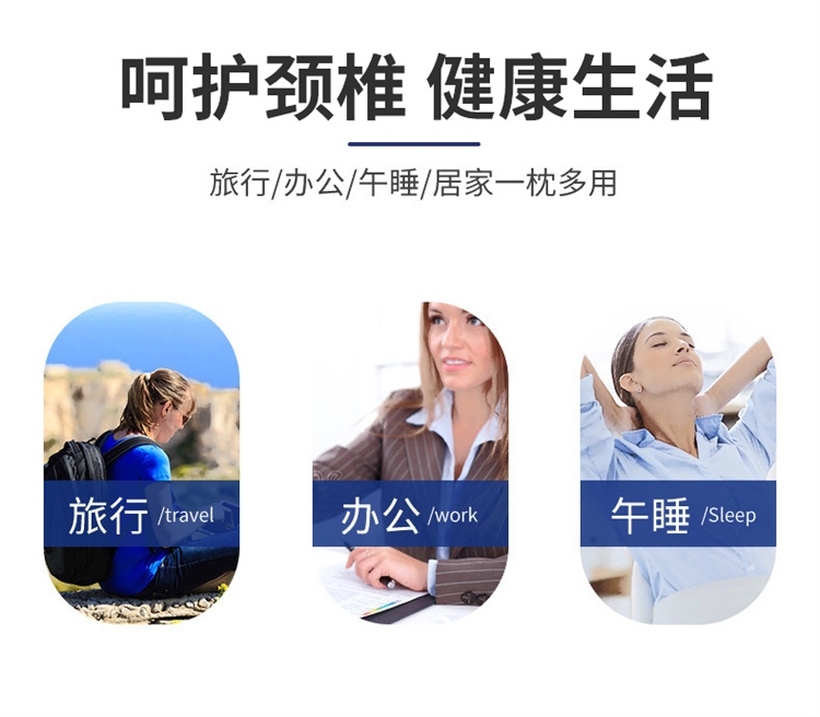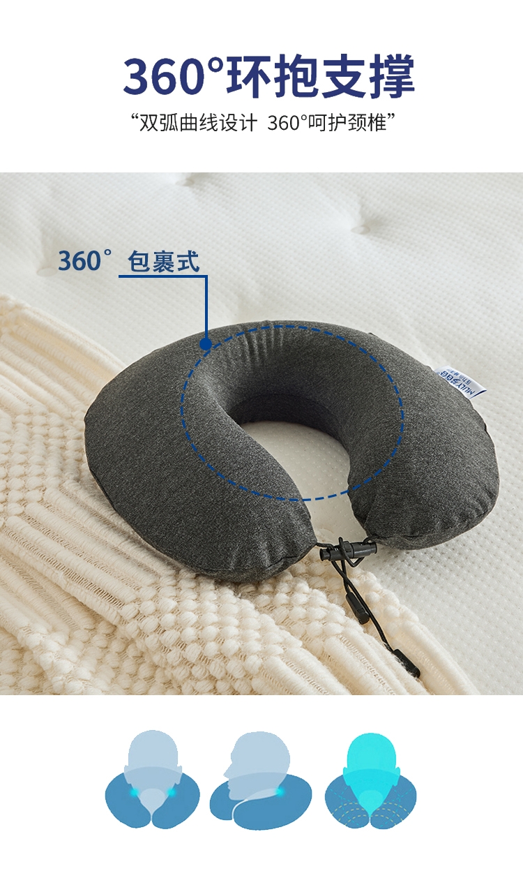 360°全贴合,“工学设计”,加高贴合下颚设计;够轻不压颈,柔中有韧,舒缓解压;便携收纳,适合多种场景