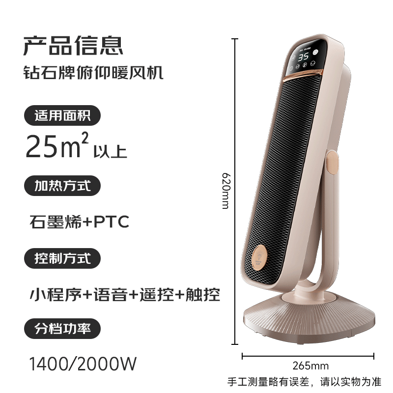 钻石牌 俯仰款石墨烯语音取暖器ZS-F62X-R