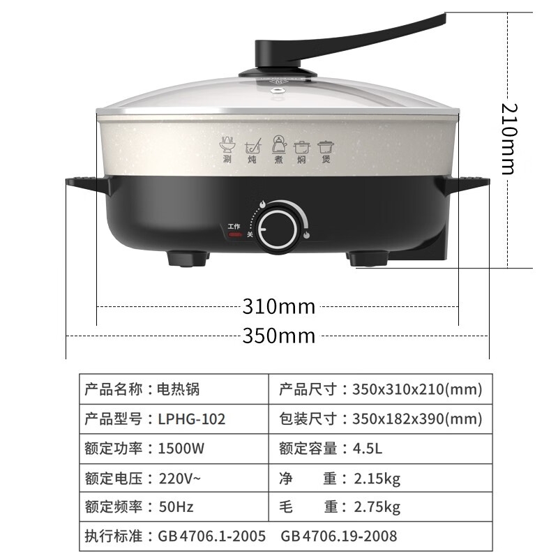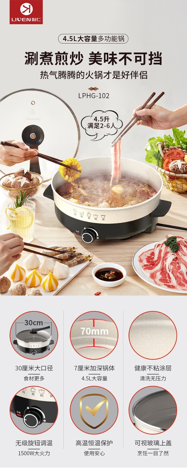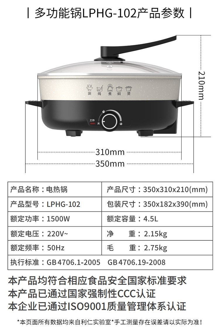 利仁 4.5L多功能锅电热锅LPHG-102