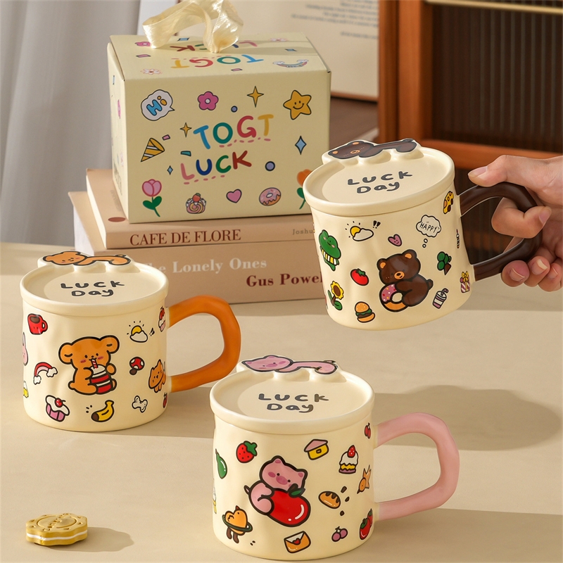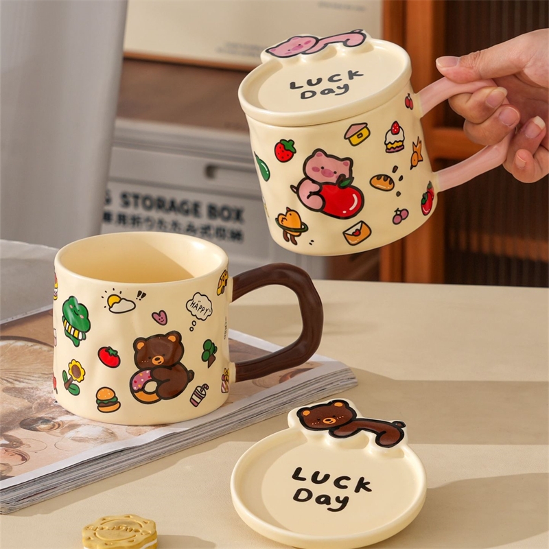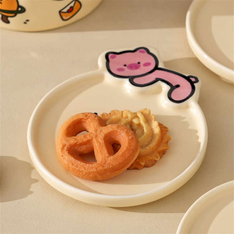 手捏高级感;动物派对可爱图案;含盖,盖子可做下午茶点心碟