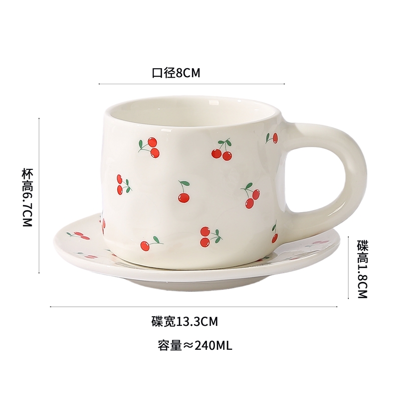 小花水果小清新图案;纯白色,高档杯碟;含碟