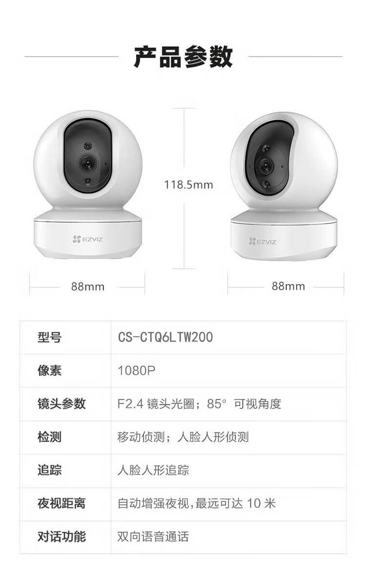 萤石 室内云台网络300万监控摄像头CTQ6LTW200